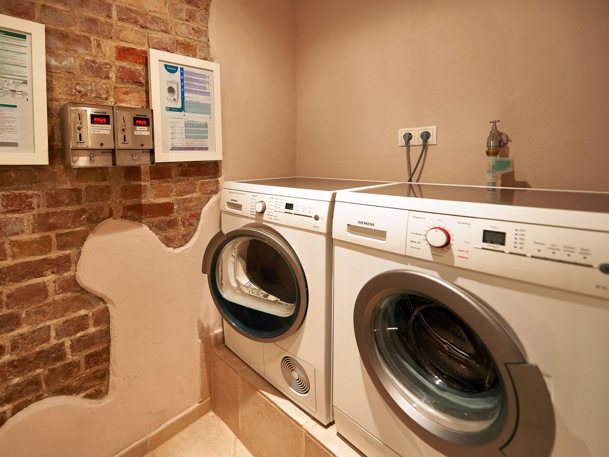 Im Souterrain des Hauses steht ein kleiner Wellnessbereich mit Sauna, Duschen, WC und Ruhezone kostenlos zur Verfügung. Bügelutensilien erhalten Sie kostenlos auf Anfrage. Gegen Gebühr finden Sie im Souterrain eine Waschmaschine, einen Trockner und ein Solariumzu Ihrer Nutzung vor.