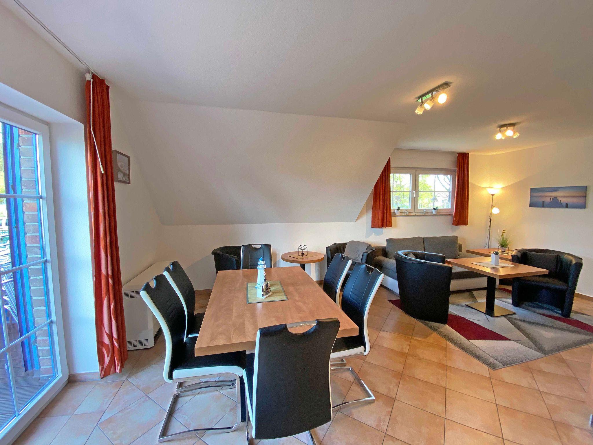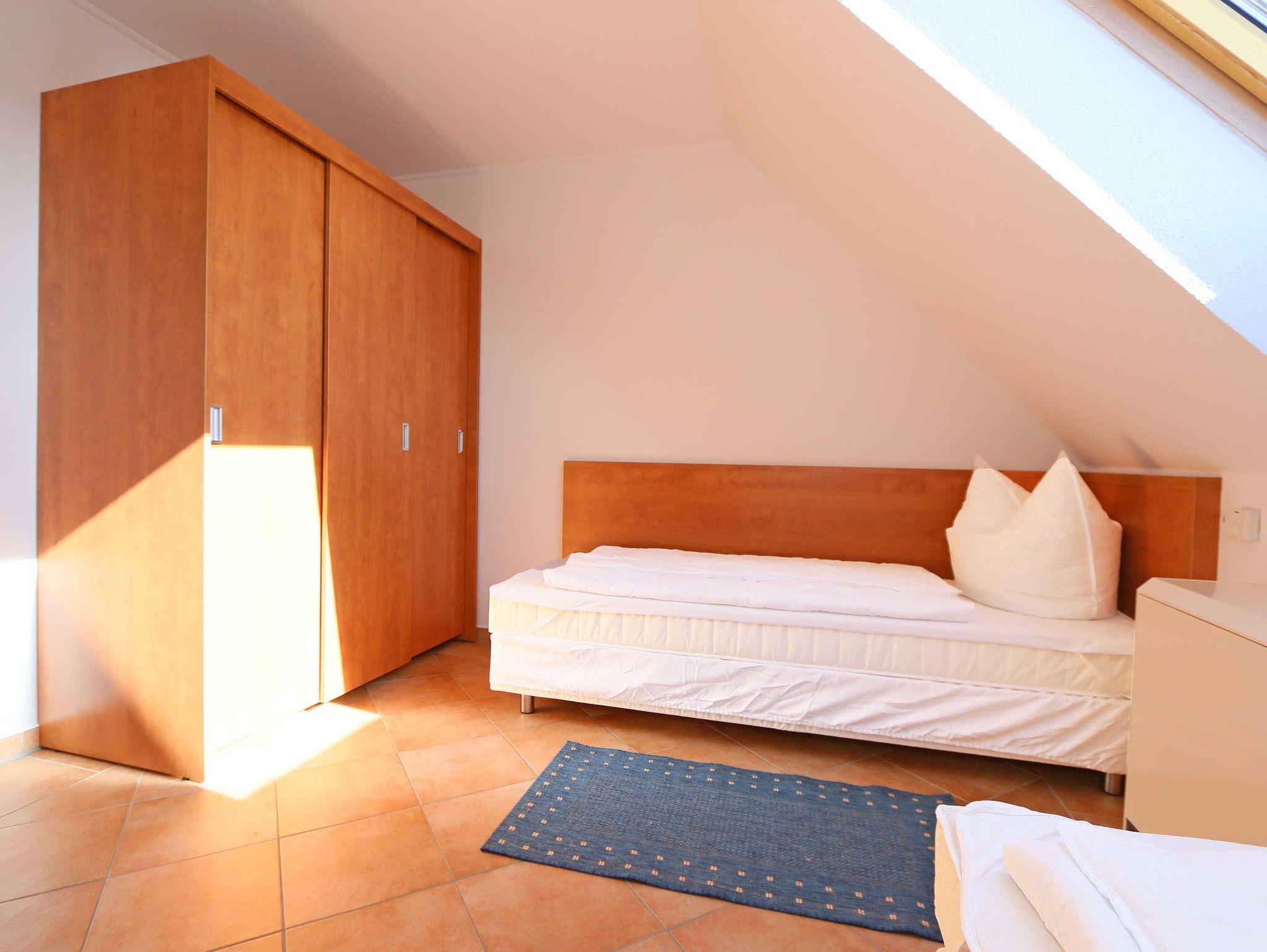 Die Ferienwohnung Nr. 3 ist 66 m² groß und besticht durch ihre komfortable Raumaufteilung. Die in der 1. Etage liegende Maisonetten-Ferienwohnung bietet ausreichend Platz für 2 bis 6 Erwachsene + 1 Kleinkind bis 3 Jahre im Kinderreisebett. Die komplette Wohnung ist mit massiven und gemütlichen Möbeln, einer Stehlampe, zwei Sessel und eine Schlafcouch (Aufbettungsmöglichkeit für 5./6. Person, 1,37 m x 1,97 m) ausgestattet. Für Ihre Unterhaltungstechnik ist gesorgt durch einen Smart-TV, ein CD bzw. Blu Ray-Player. Auch im Urlaub brauchen Sie auf einen Internetanschluß (WLAN) nicht verzichten. Dieser ist für Sie inklusive. Die angrenzende Küchenzeile ist mit allem was Ihr Herz begehrt ausgestattet und verfügt über einen Geschirrspüler, eine Mikrowelle, ein 4 Zonen-Ceranfeld mit Backofen, einen Kühlschrank mit Eisfach, einen Wasserkocher, einen Toaster, eine Kaffeemaschine und diverse Küchenutensilien, so dass Sie, wenn Sie es wünschen nach Herzenslust Kochen können. Der bestuhlte Balkon (Westen) lädt Sie zum Verweilen ein mit Blick auf den Selliner See. Bei einem Glas Wein können Sie hier einen wunderschönen Sonnenuntergang genießen. Die gemütlichen Schlafräume mit je einem bequemen Doppelbett garantieren Ihnen einen guten Schlaf. Das 1.Schlafzimmer wurde mit einem Doppelbett (1,80 m x 2,00 m), verstellbare Lattenroste, Nachttischablagen mit Leselicht sowie einen Kleiderschrank ausgestattet. Das 2. Schlafzimmer verfügt über 2 Einzelbetten (0,80 m x 2,00 m), Nachttischablagen und einen Kleiderschrank. Beide Schlafzimmer sowie das Bad erreichen Sie bequem über die Treppe. Fensterläden und Vorhänge dienen zum Verdunkeln der Räume. In allen Räumlichkeiten finden Sie Nachtspeicheröfen. Im Tageslichtbad befinden sich eine Dusche, ein Waschtisch, ein WC, Kosmetikspiegel sowie ein Fön. Ein Wäscheständer sowie Reinigungsutensilien stehen bereit. Auch Ihren kleinen Vierbeiner brauchen Sie nicht zu Hause lassen, mit einem eigenen Schlafplatz ist dieser gegen eine Gebühr ein gern gesehener Gast. Ihre mitgebrachten oder geliehenen Fahrräder können Sie nach Verfügbarkeit im abschließbaren Fahrradraum unterstellen. Ein PKW-Stellplatz Nr. 3 befindet sich direkt auf dem Grundstück. Die Erstausstattung eines Wäschepaketes (komplette Bettwäsche, 1 Duschhandtuch, 1 kleines Handtuch) können Sie bis 14 Tage vor Anreise gegen einen Aufpreis dazu buchen oder durch eigene ergänzen. Ab 2 gebuchten Paketen erhalten Sie einmalig 1 Geschirrhandtuch und 1 Duschvorleger hinzu.