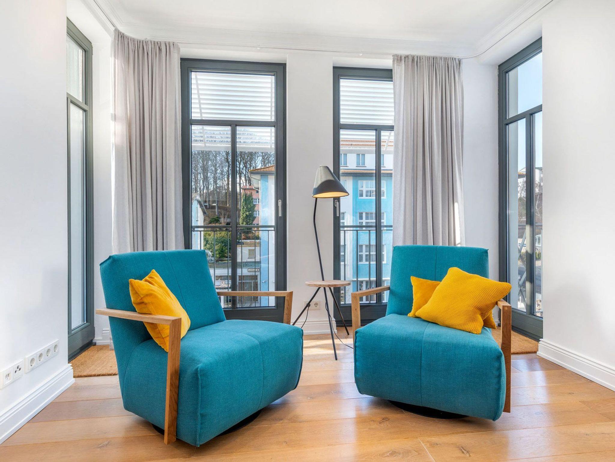 Exklusive 3-Zimmer-Ferienwohnung Silbermöwe in Sellin mit Meerblick, Sauna und Tiefgaragenstellplatz.