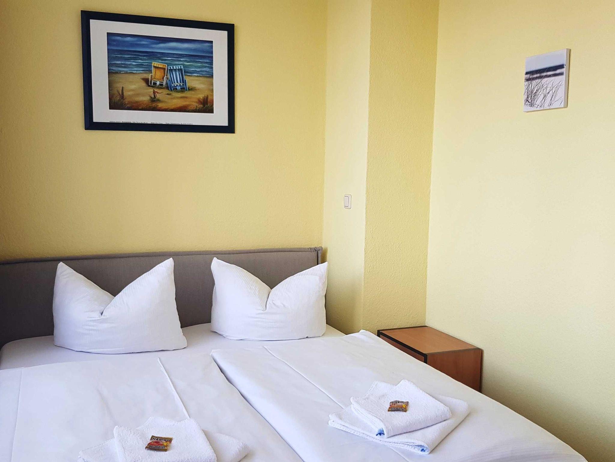 Das Appartement bietet Ihnen ein großzügiges Schlafzimmer mit Doppelbett (180x200cm) und ein kleineres Schlafzimmer mit einem Doppelbett (160x200cm) mit einem Flatscreen-TV. Zusätzlich verfügt der Wohnraum über eine Couch .