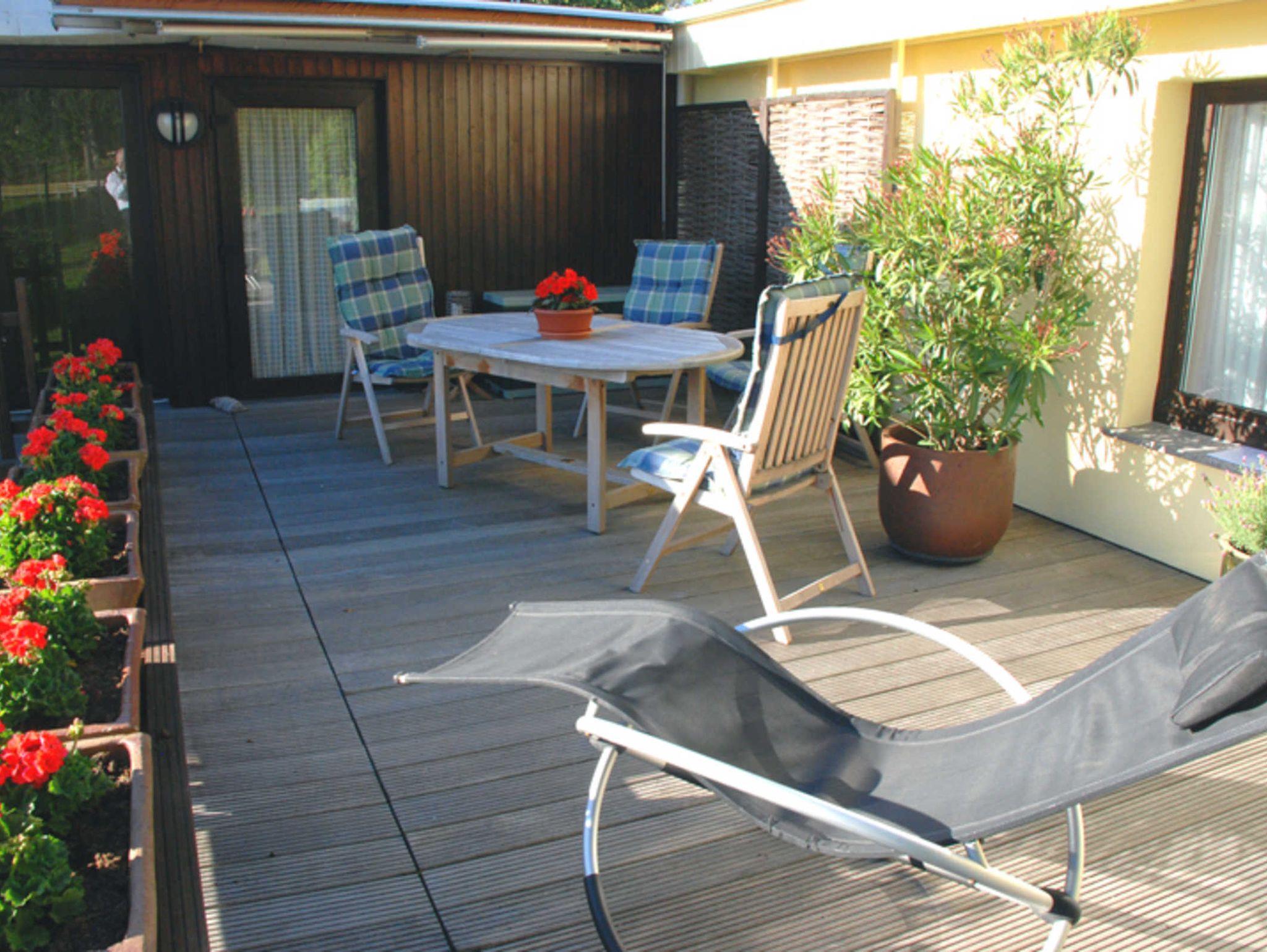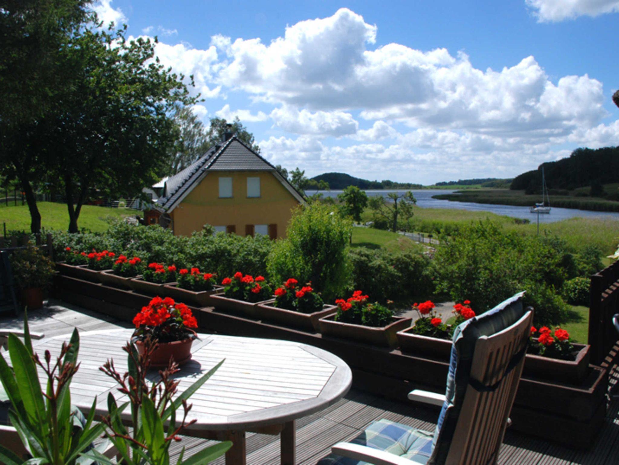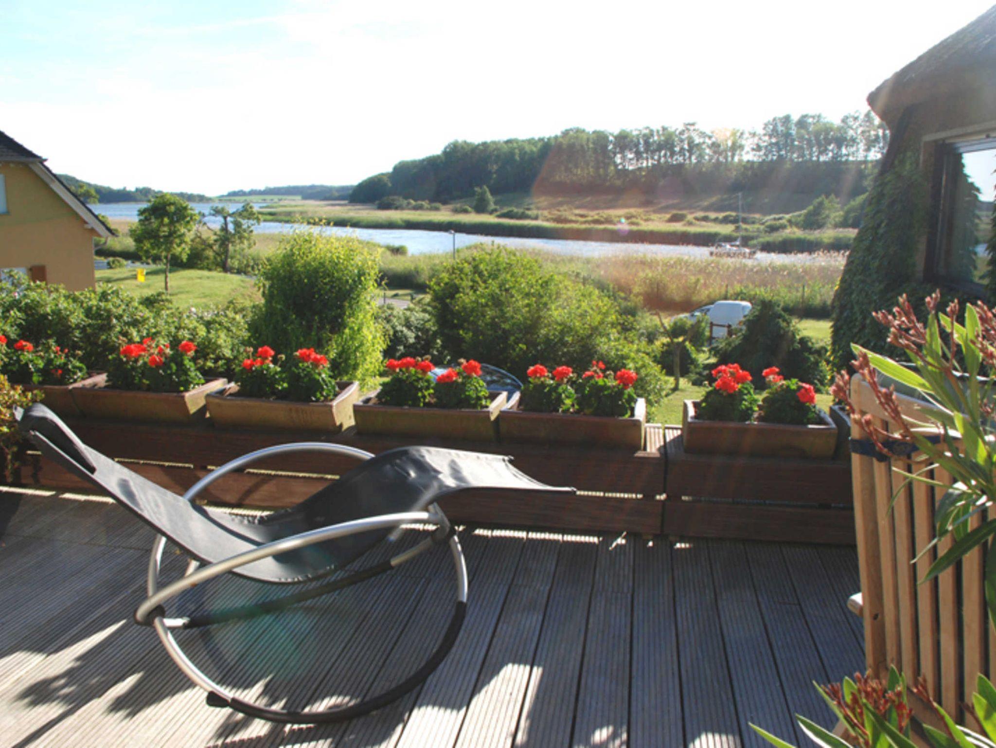 Zu jedem Ferienappartement gehört eine Terrasse mit Gartenmöbeln bzw. eine Sitzgelegenheit im Garten. Es besteht die Möglichkeit zum Grillen nach Absprache mit den Gastgebern (Reetdach!). Am Objekt gibt es auch einen kleinen Bootssteg im Schilf, an dem gern auch kleine Boote oder Jollen anlegen können.