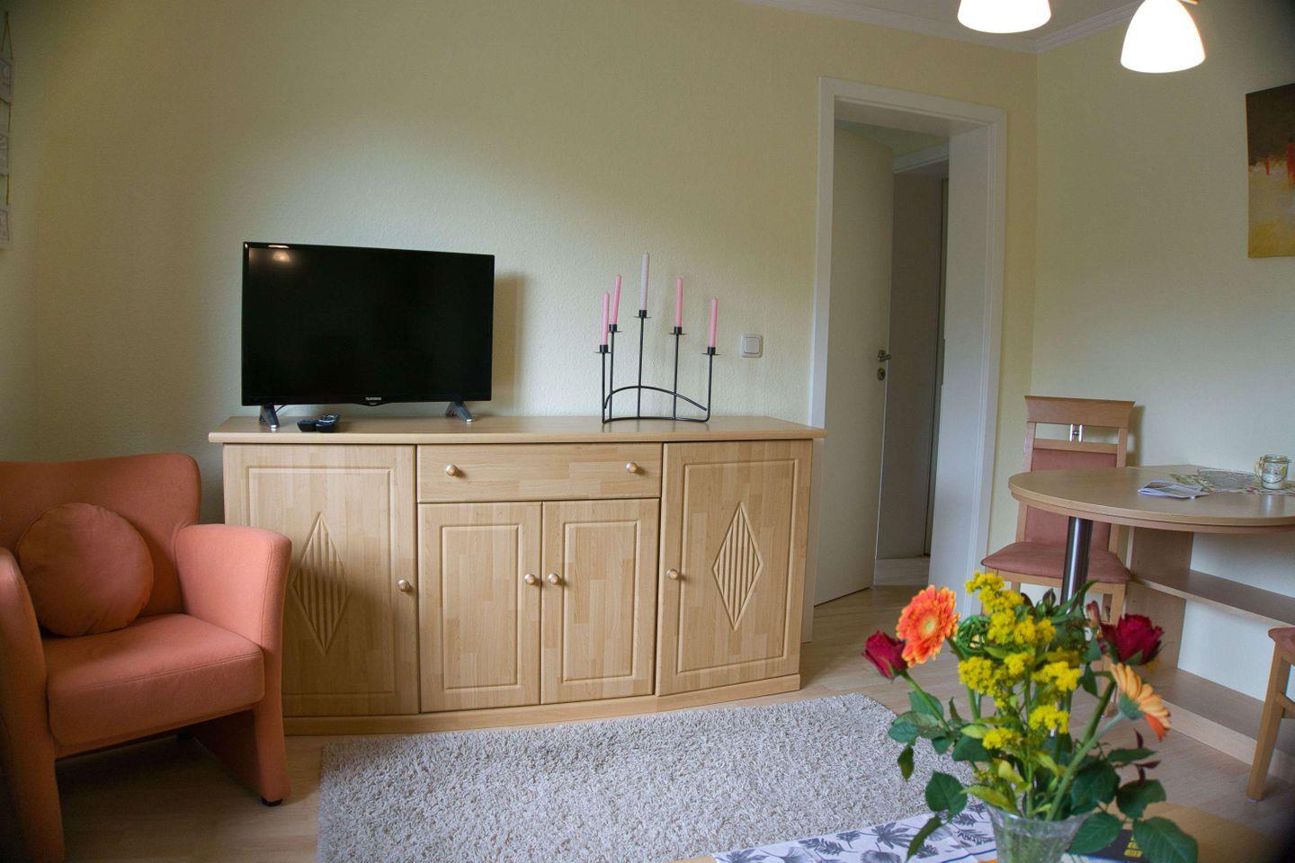 WOHNEN // Wohnraum, Essbereich, Couchgarnitur, Flachbild-TV, CD-Player ++