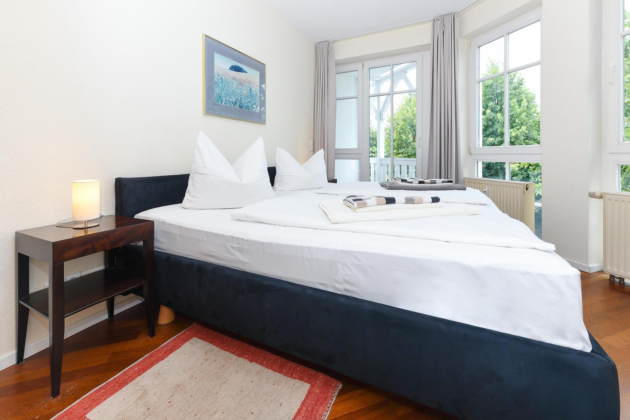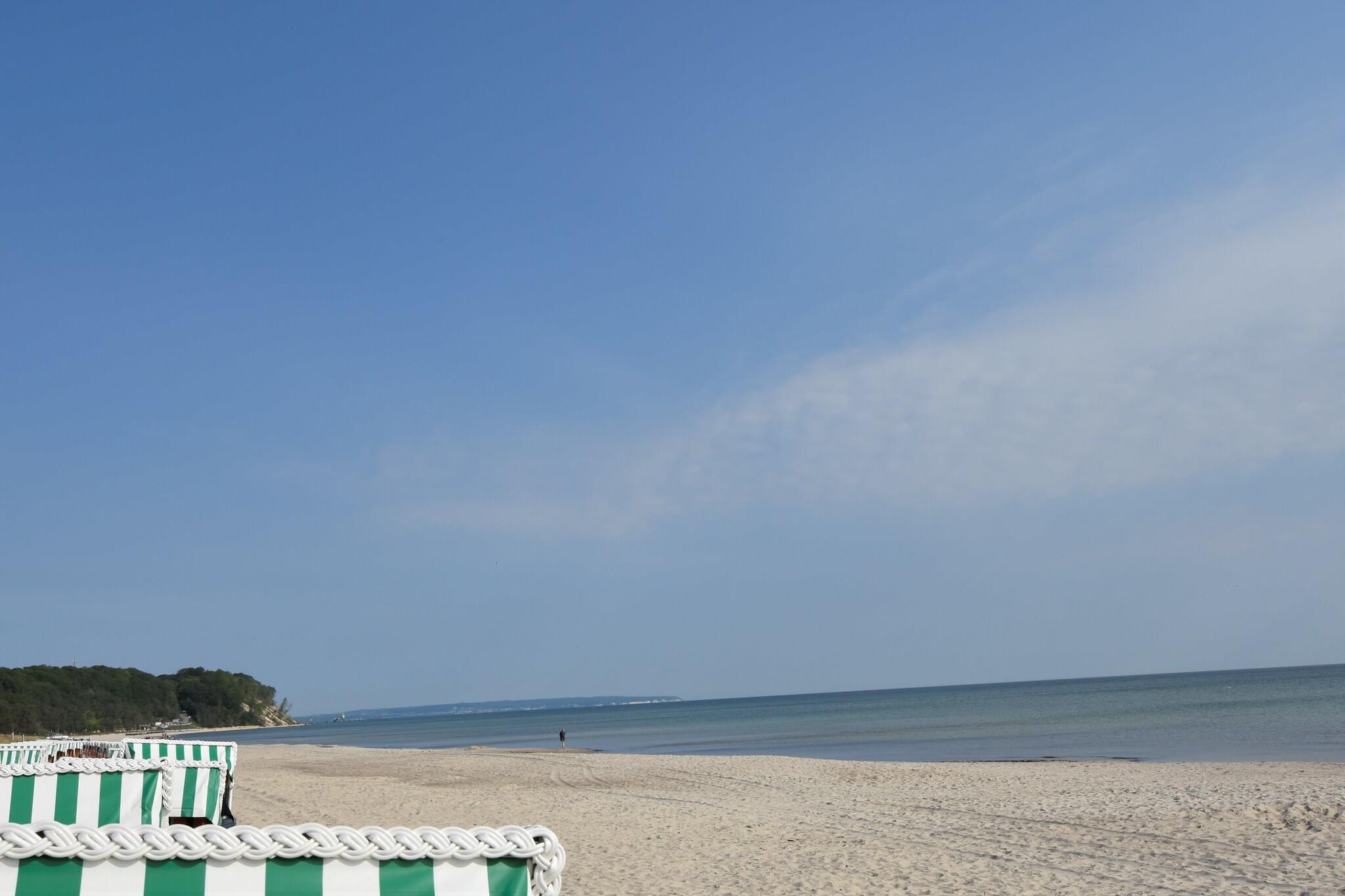 Helle Ferienwohnung in Sellin, 800 m vom Strand, mit Balkon, voll ausgestatteter Küche und kostenlosem Parkplatz.