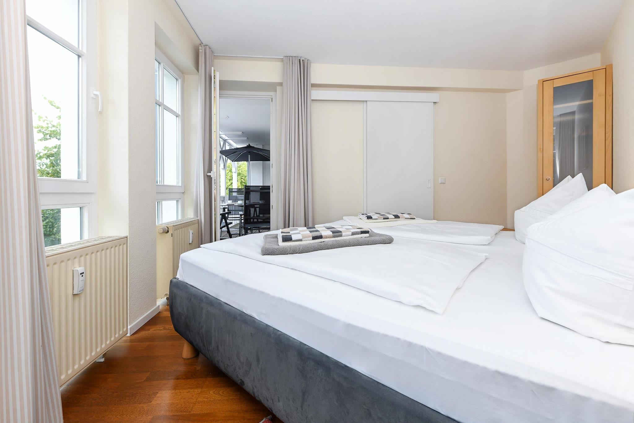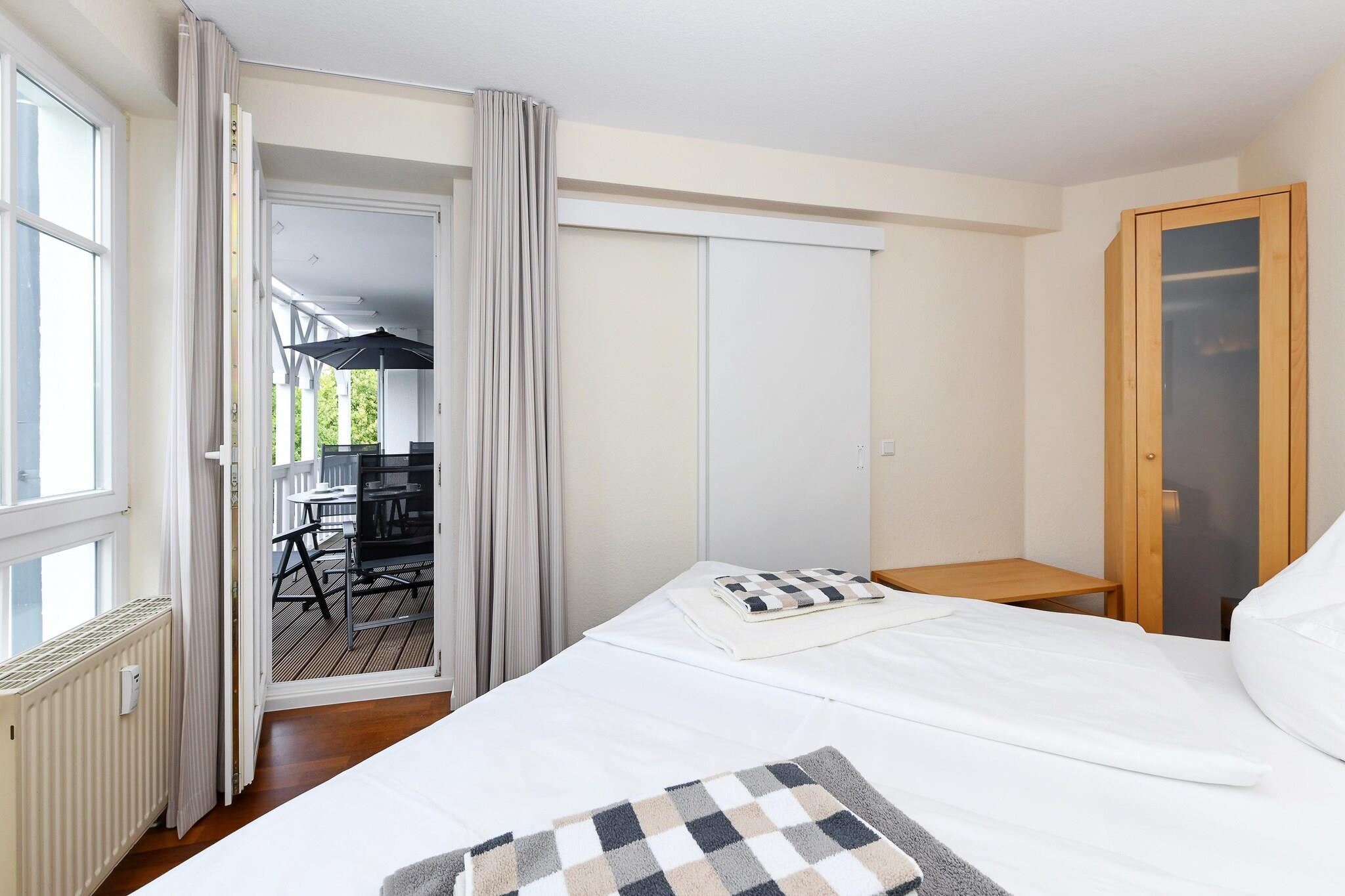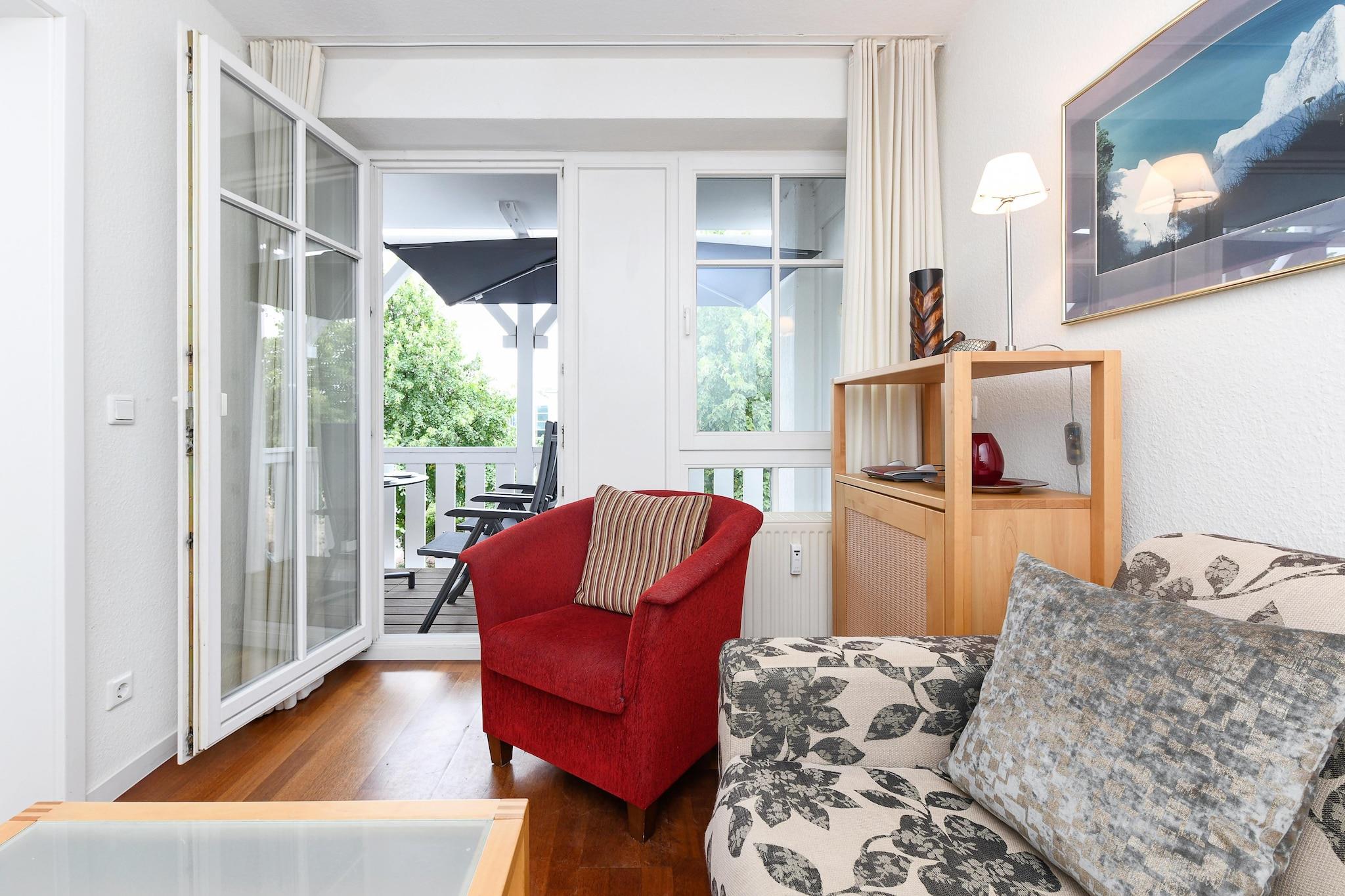 Ideal für Paare oder kleine Familien. Nur 800 m vom feinen Sandstrand Sellins entfernt bietet diese helle Wohnung im ersten Stock einen erholsamen Ausgangspunkt in einem der beliebtesten Ferienorte der Ostseeküste. Perfekt für Paare oder kleine Familien: Der großzügige Wohn-/Schlafbereich mit Doppelschlafsofa (140 × 200 cm), gemütlichen Sitzgelegenheiten und Sat-TV lädt zum Entspannen ein. Die Küche mit Cerankochfeld ist komplett ausgestattet und verfügt über Kaffeemaschine, Backofen, Mikrowelle, Geschirrspüler und Kühl-Gefrierkombination – ideal für entspanntes Kochen. Ein separates Schlafzimmer bietet ein komfortables Kingsize-Bett (200 × 200 cm), während das elegante Badezimmer mit Dusche und WC ausgestattet ist. Zwei private Balkone laden mit Gartenmöbeln zum Genießen der frischen Küstenluft ein. Dank des kostenlosen Parkplatzes und der Nähe zu einem Supermarkt (300 m), einem Arzt (1,4 km) und einer Bushaltestelle (400 m) ist alles für einen unbeschwerten Aufenthalt in Sellin bequem zu erreichen.