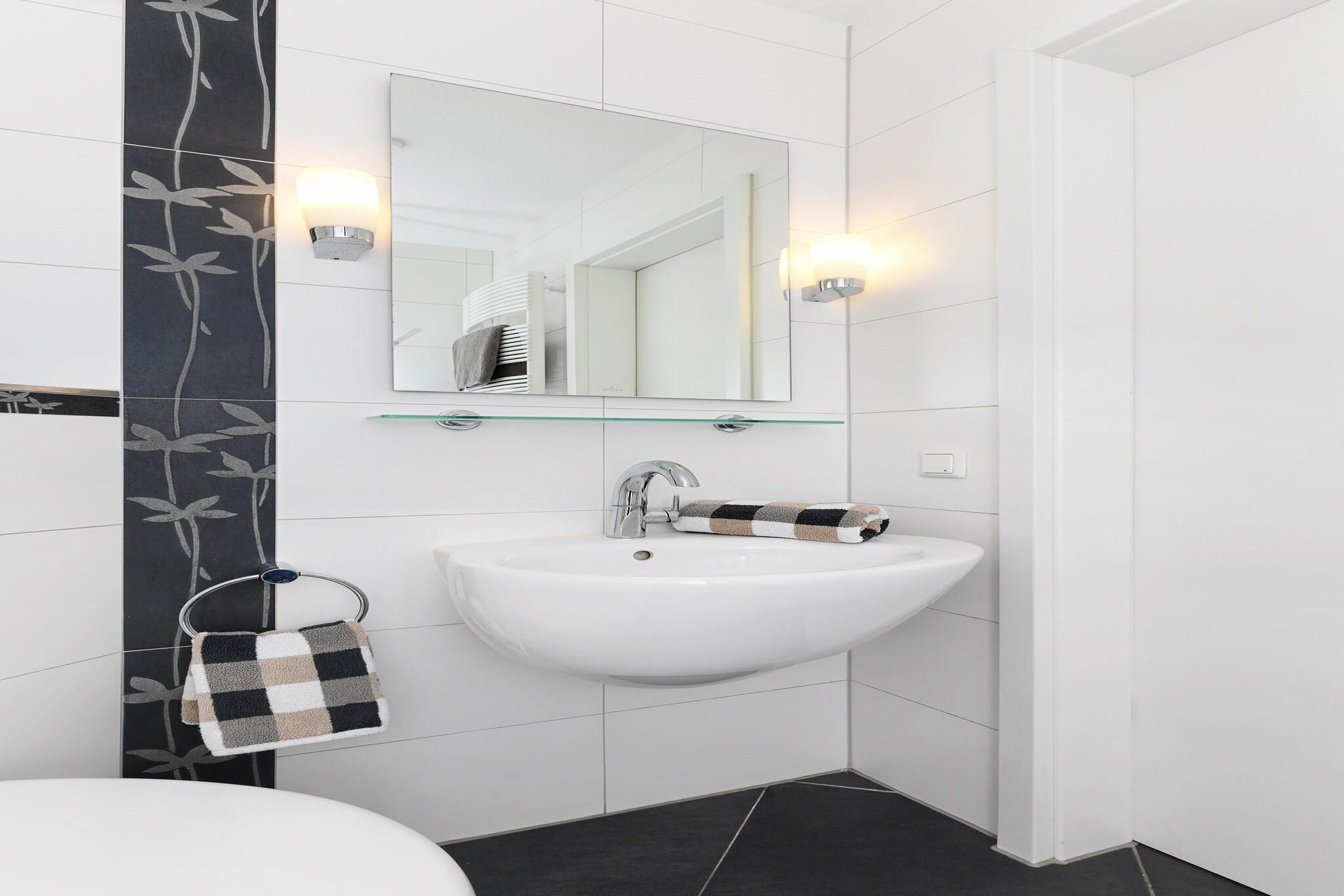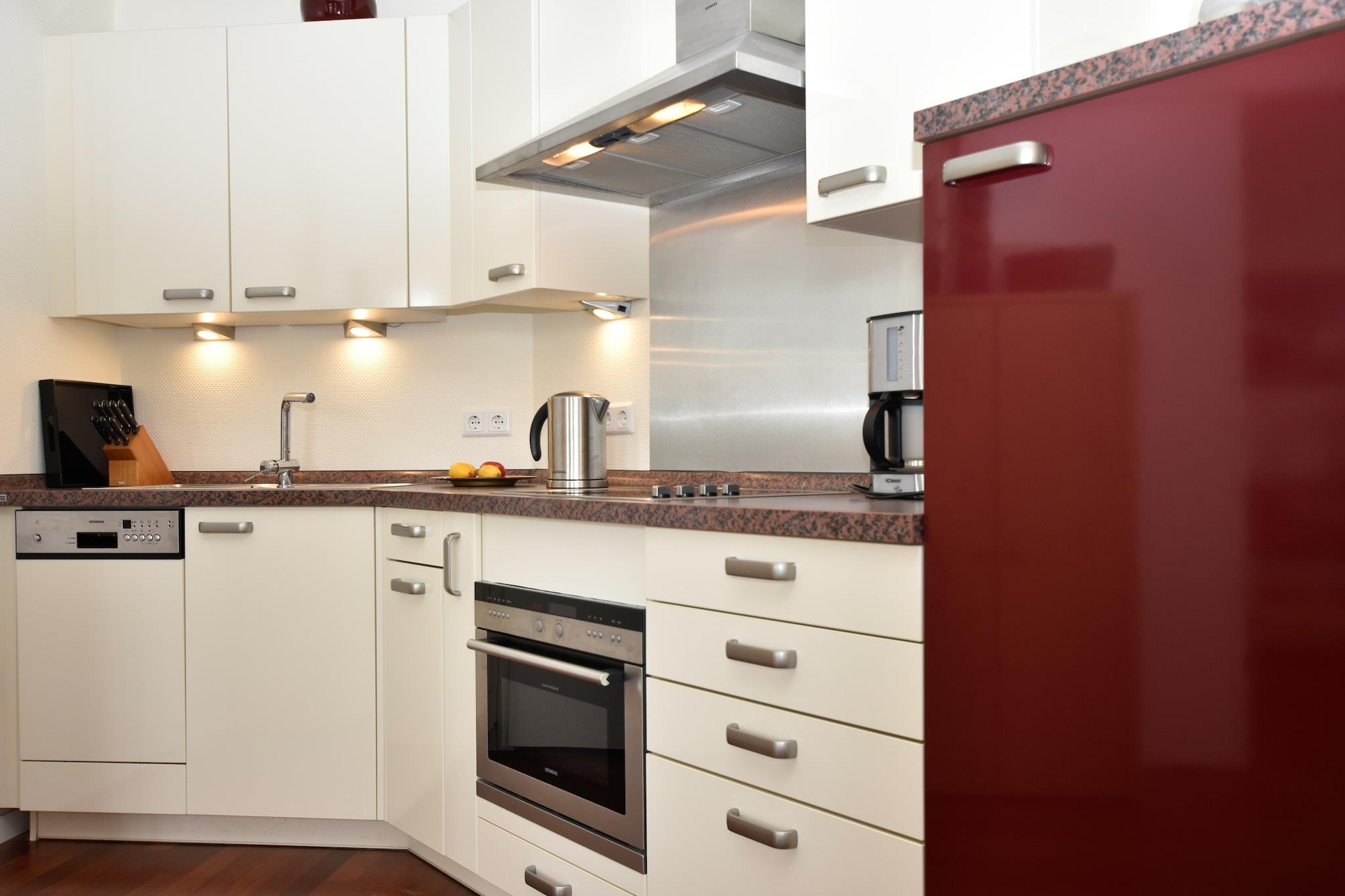 In der 1. Etage: (Küche(Kochherd(Ceranfeld), Kaffeemaschine, Backofen, Mikrowelle, Spülmaschine, Kühl-/Gefrierkombination), Wohn-/Schlafzimmer(Doppelschlafcouch(140 x 200 cm), TV, Sitzecke), Schlafzimmer(Doppelbett king size(200 x 200 cm)), Badezimmer(Dusche, Toilette), 2x Balkon) Gartenmöbel, Parkplatz