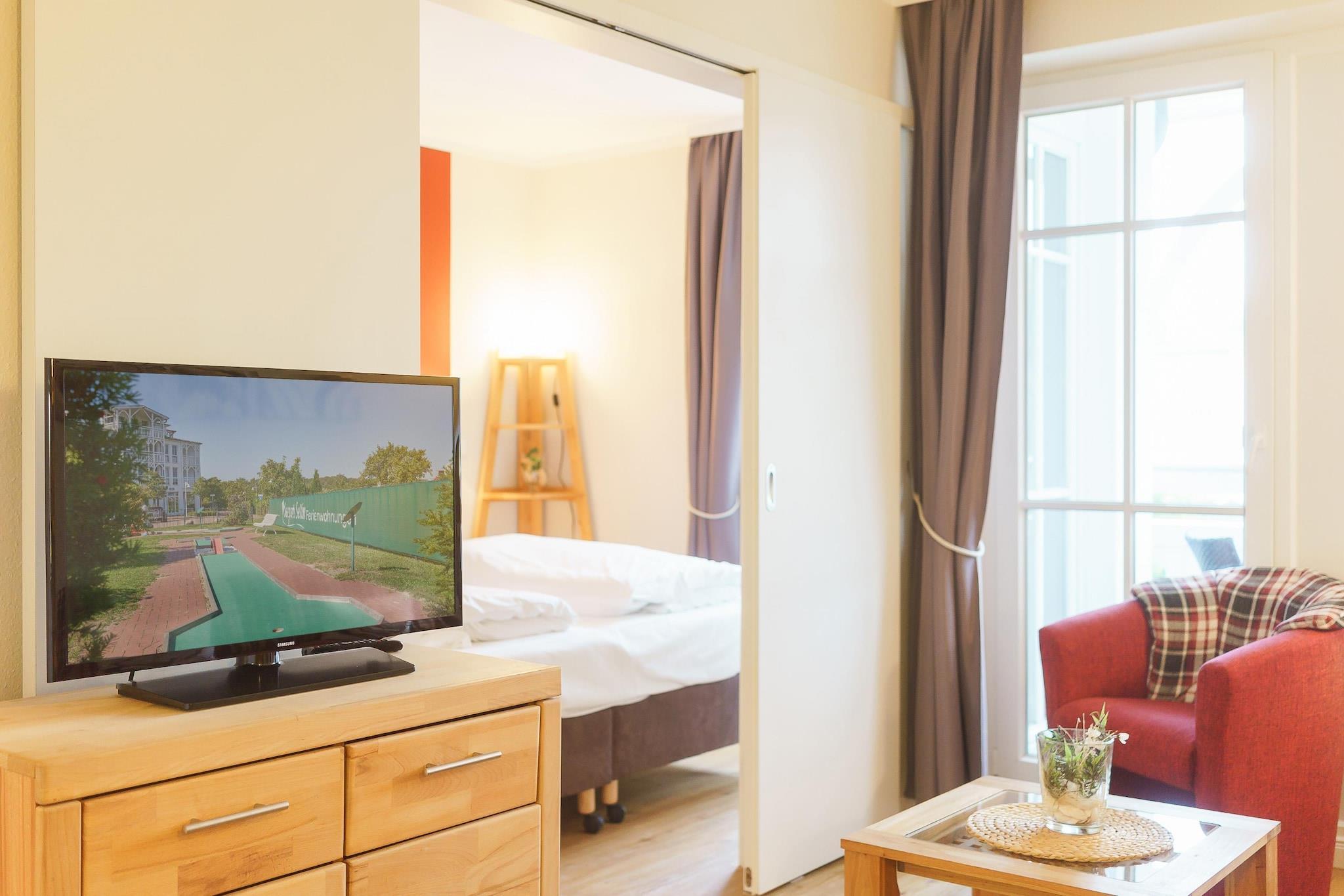 Moderne Ferienwohnung im Seepark Sellin, 800 m vom Ostseestrand, mit Wellness, WLAN und familienfreundlicher Ausstattung.