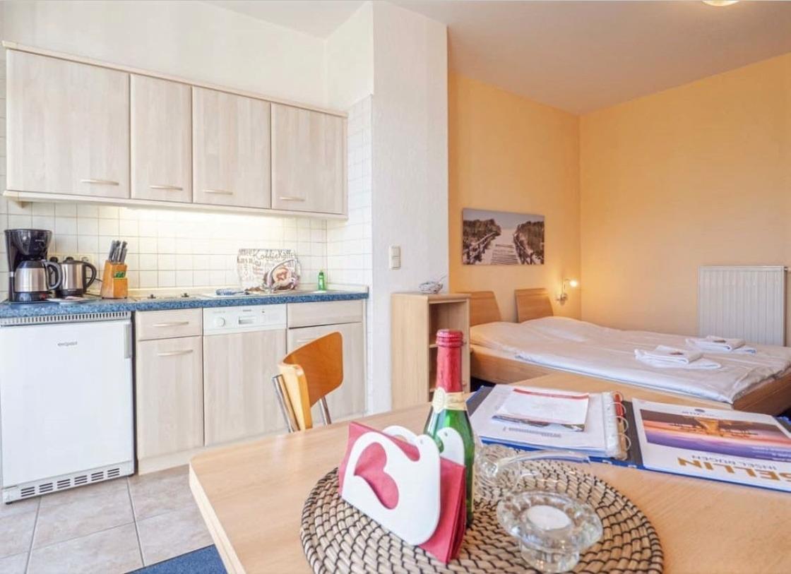 Die Residenz Seeblick liegt direkt auf dem Hochufer. Mit herrlichem Panoramablick und kürzester Entfernung zum Strand und zur Seebrücke von Sellin, ist das Ferienobjekt ideal gelegen. Das Studio «Ostseewind» liegt im 2. Stock und ist einfach mit dem Fahrstuhl erreichbar. Es verfügt über einen grossen Balkon und ist komfortabel eingerichtet. Das bequeme Doppelbett und das moderne Schlafsofa bieten Platz für bis zu 3 Personen. Küche und Bad sind komplett eingerichtet.
