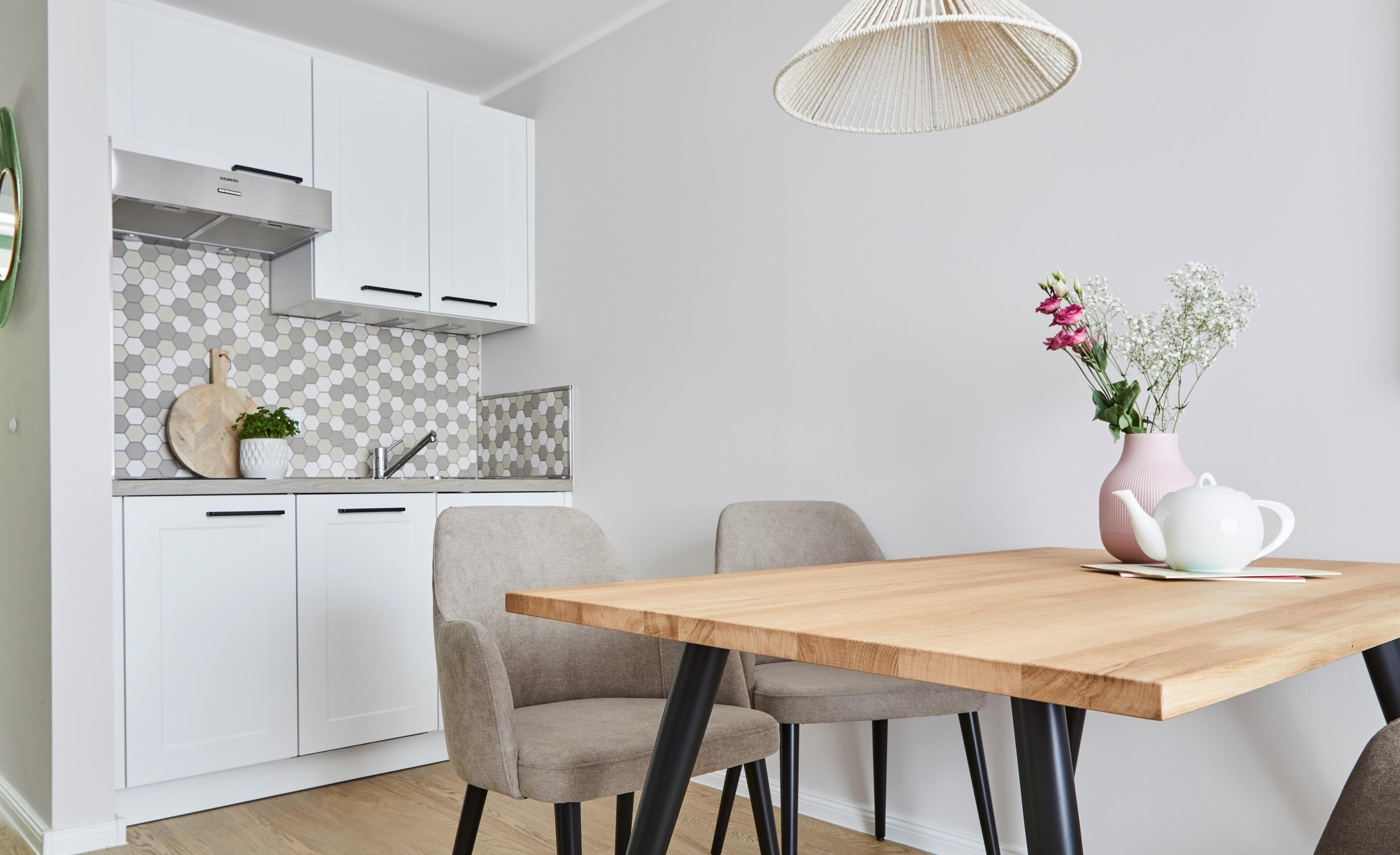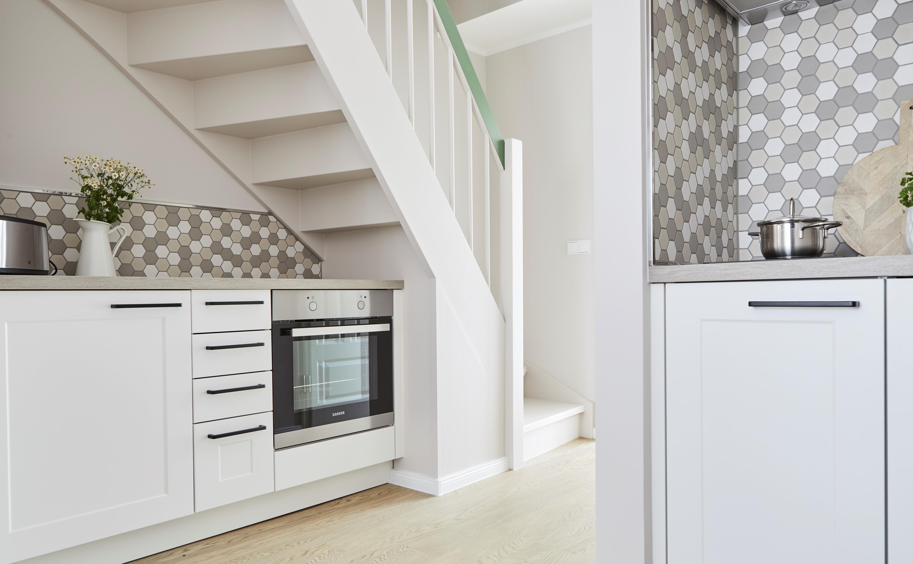 Das Gartenhaus hat insgesamt vier Wohnungen. Jede Wohnung hat einen separaten Eingang und eine eigene Terrasse in den Garten. Das vermittelt ein Gefühl, wie in seinem eigenen kleinen Reihenhäuschen. Im Erdgeschoss befindet sich der Wohnraum mit integrierter Küchenzeile und das modern ausgestattete Badezimmer. Im Obergeschoss befinden sich die zwei getrennten Schlafräume.