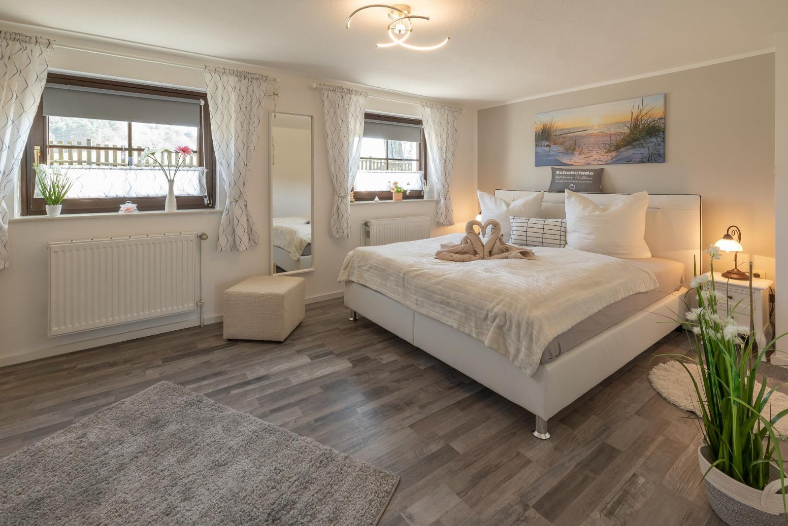 Das Schlafzimmer verfügt über ein Boxspringbett mit Topper (180 cm x 200 cm). Gerne können Sie dort auch das vorhandene Babybett für Kleinkinder bis zu 3 Jahren unterstellen, um Ihren Engel nah bei sich zu haben. Dafür werden keine Extrakosten berechnet.