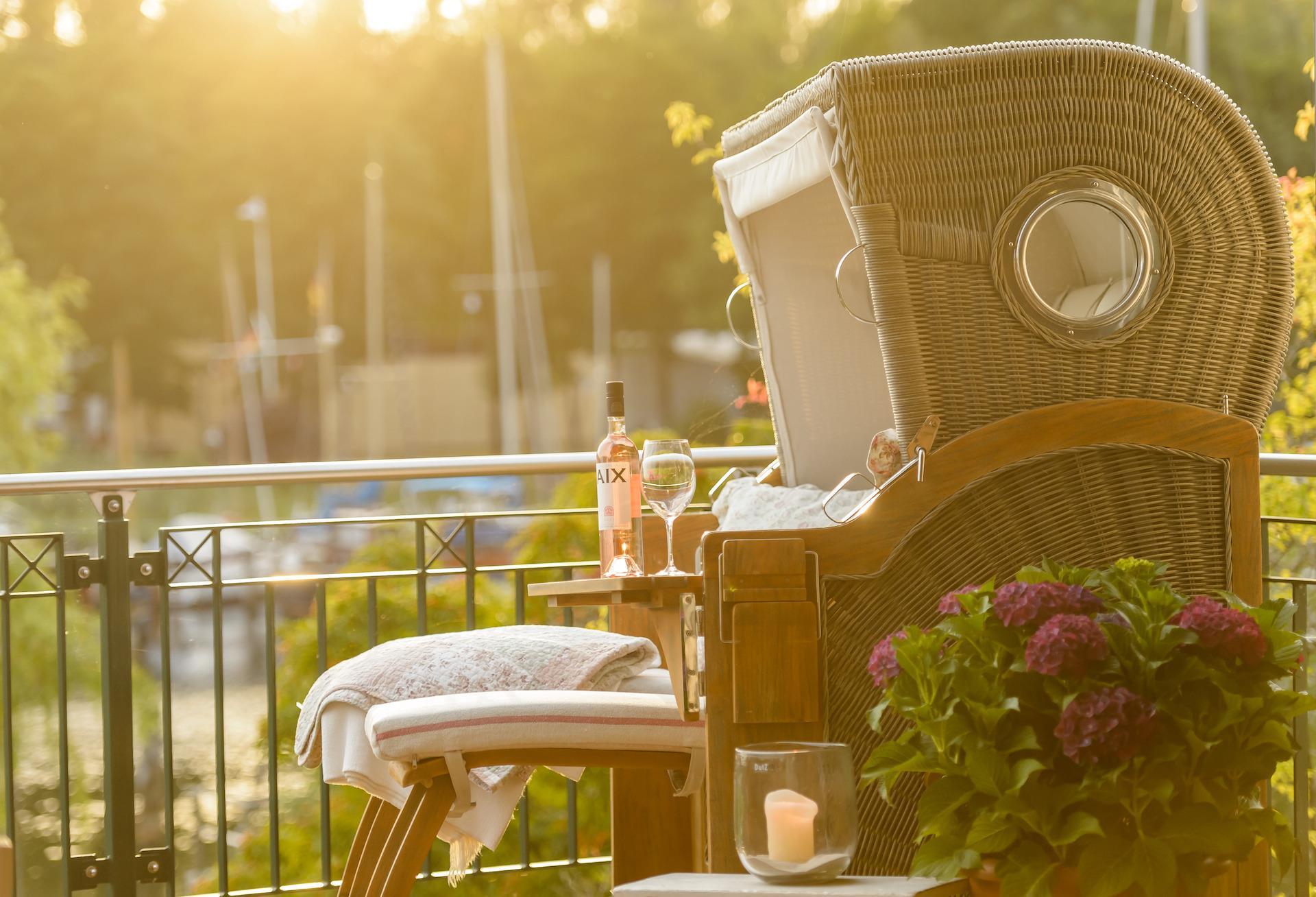 mit dem Lieblingsbuch im Strandkorb auf der großen Sonnenterrasse versinken