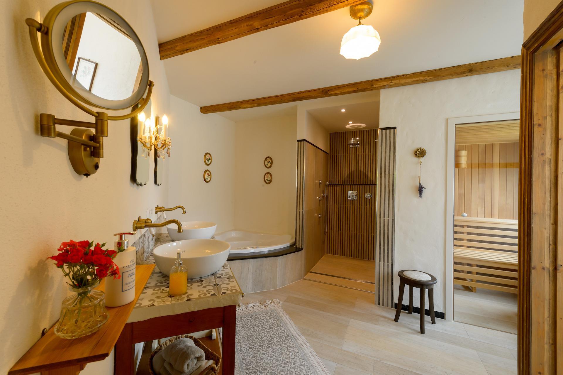 In unserem Gästehaus empfängt Sie ein hochwertiger Landhausstil mit familiärer Atmosphäre. Der romantische Garten, die Kaminecke oder die private Sauna die schaffen kleine Nischen zum Wohlfühlen und Träumen.