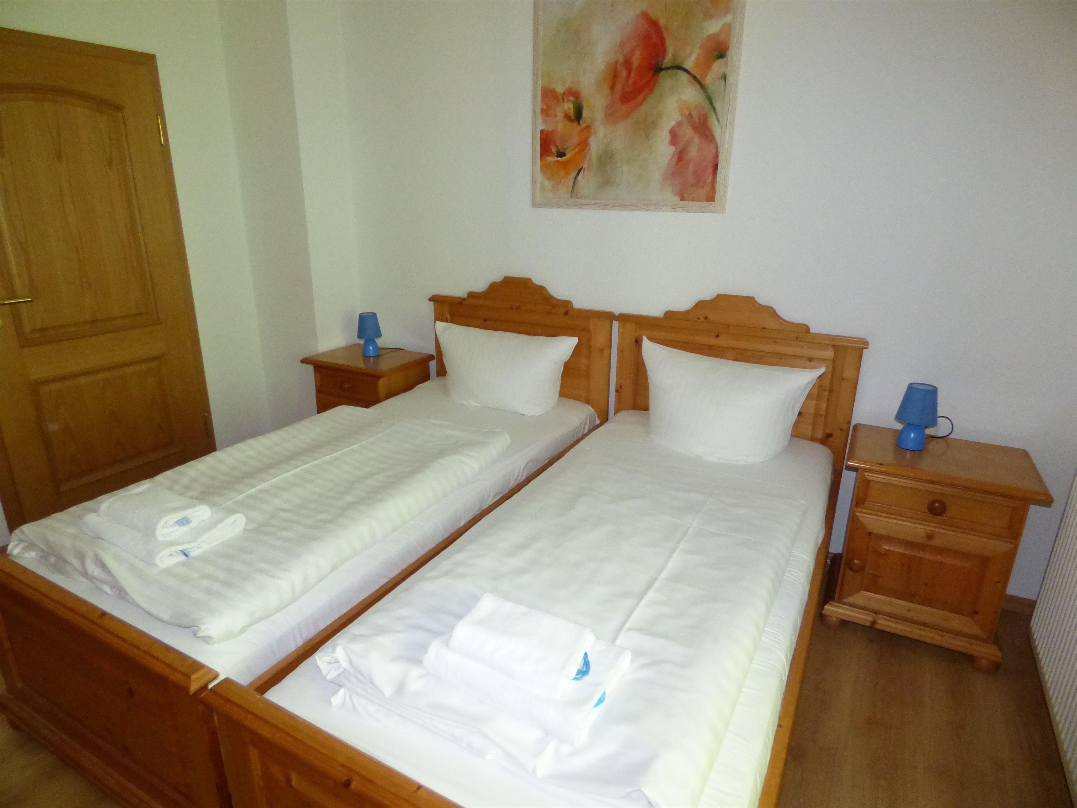In dem größten Raum der Wohnung ist die Küche, Wohnbereich und ein Schlafbereich untergebracht. Der Wohnbereich besteht aus zwei Couchen (Dreisitzer / Zweisitzer), einen Sessel sowie einen LCD-Fernseher. Die Küche ist mit Geschirrspüler, Herd, Wasserkocher, Toaster und Geschirr ausgestattet. Der Esstisch bietet Platz für 6 Personen (weitere Stühle befinden sich in den Schlafzimmern). Im Schlafbereich befindet sich ein Doppelbett (180 x 200cm) und ein Kleiderschrank. Es gibt 2 separate Schlafzimmer mit je einem Doppelbett (180 x 200cm) und Kleiderschrank. Ein Babyreisbett ist vorhanden. (Zusammen stehen Ihnen 6 Schlafgelegenheiten in Betten und 1 Babybett zur Verfügung).