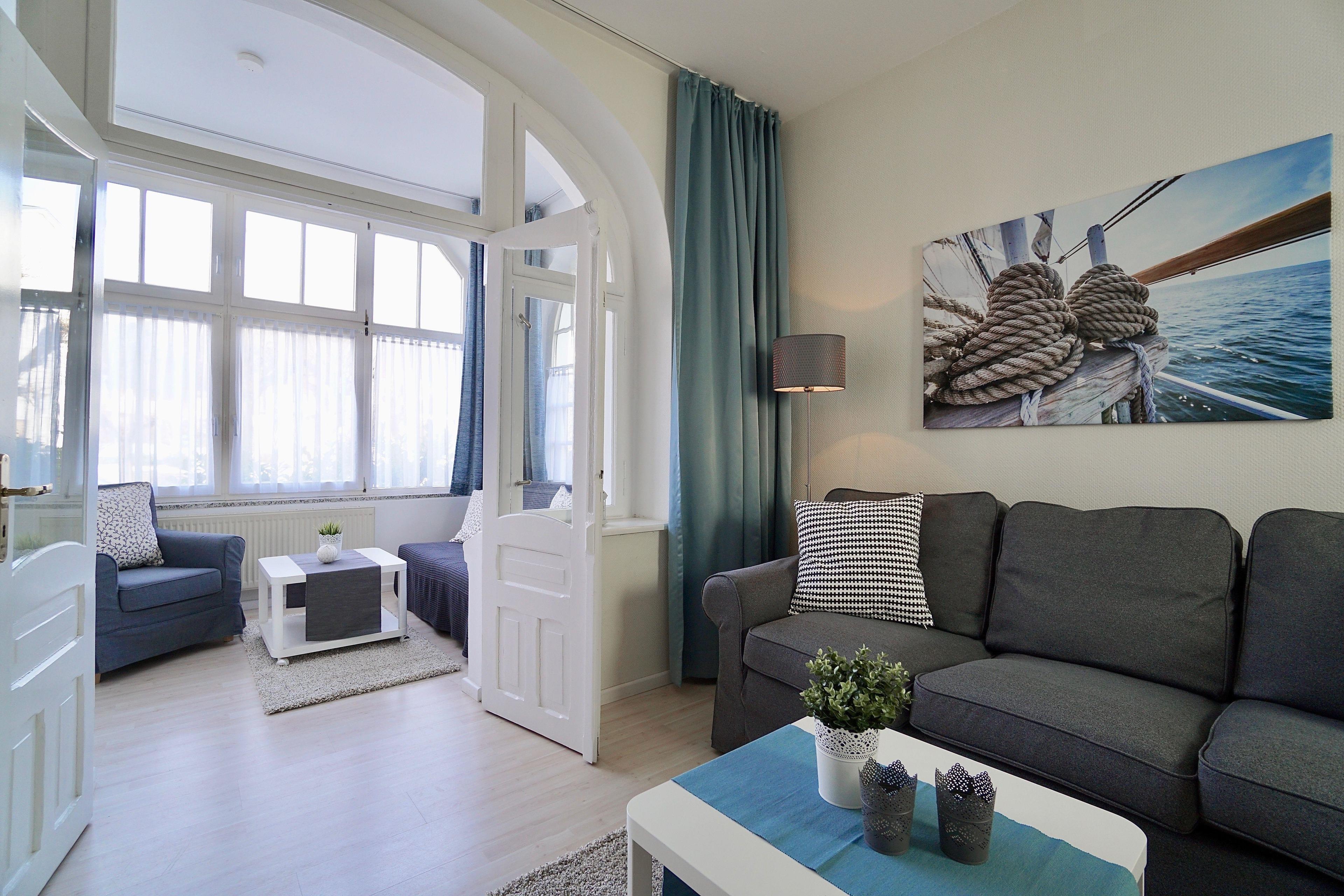 Die Ferienwohnung liegt in der schönen Wilhelmstraße, in der viele prunkvolle Villen im berühmten Bäderstil stehen, wie zum Beispiel auch unser Haus Arkona, in der sich dieses Ferienappartement befindet.