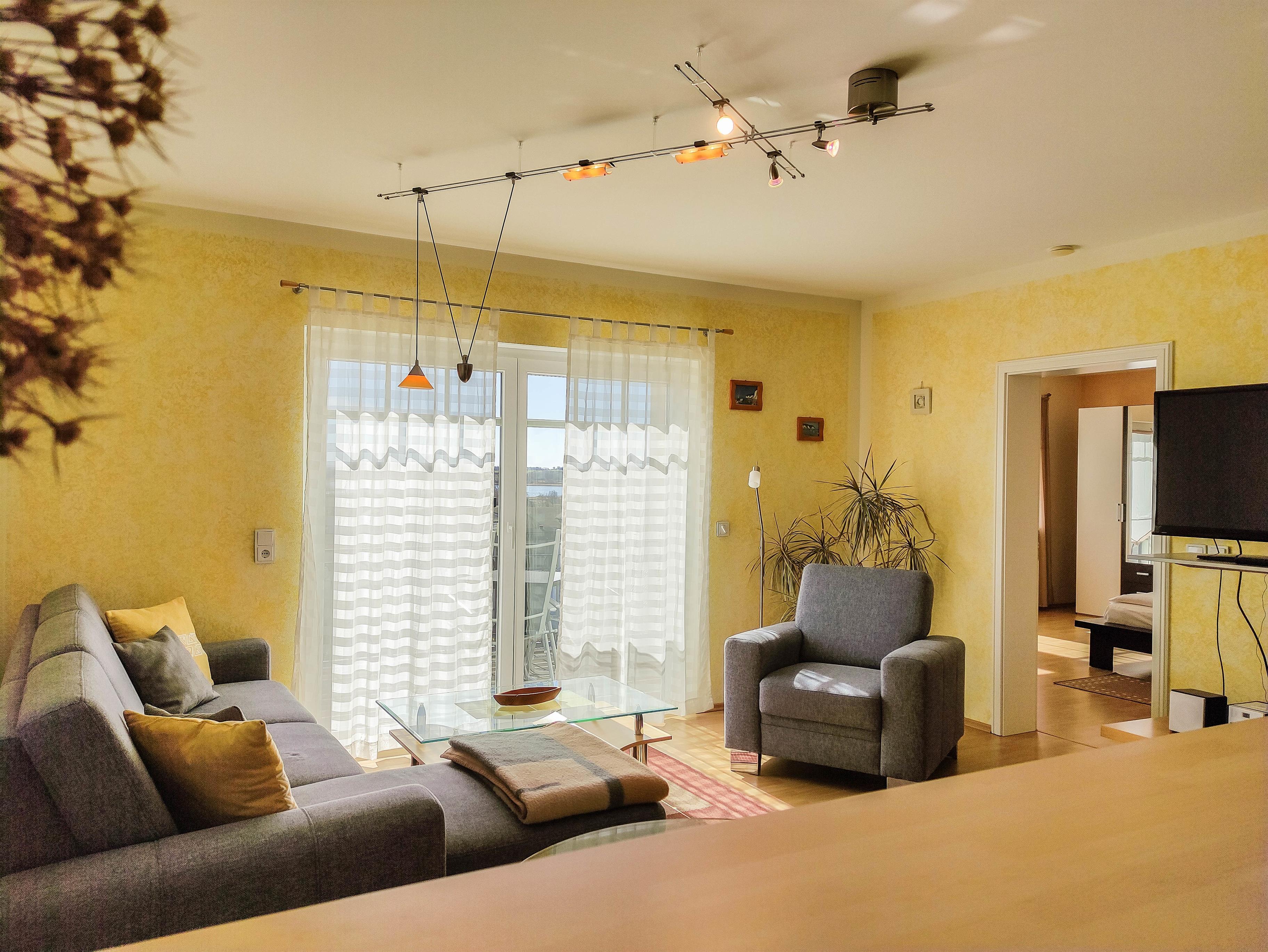 mit ca. 70 m2 Wohnfläche befindet sich in der 1.Etage und verfügt über 2 Balkone mit Blick über Sellin. Die Ferienwohnung bietet