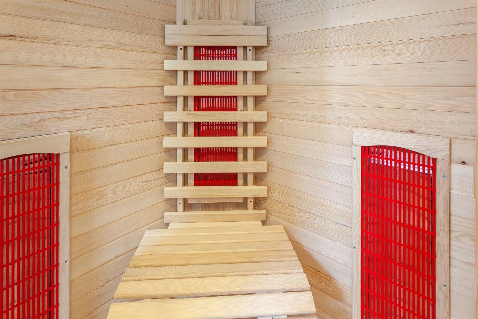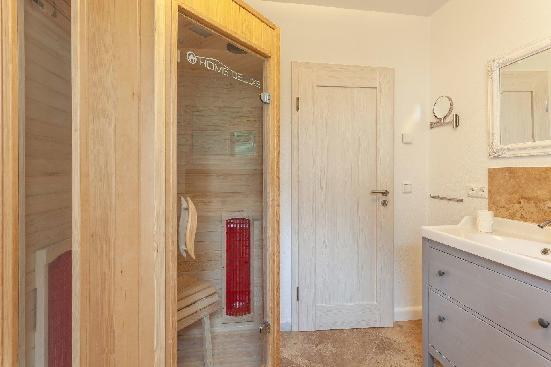 • Badezimmer mit Dusche, WC, Haartrockner und privater Infrarotsauna