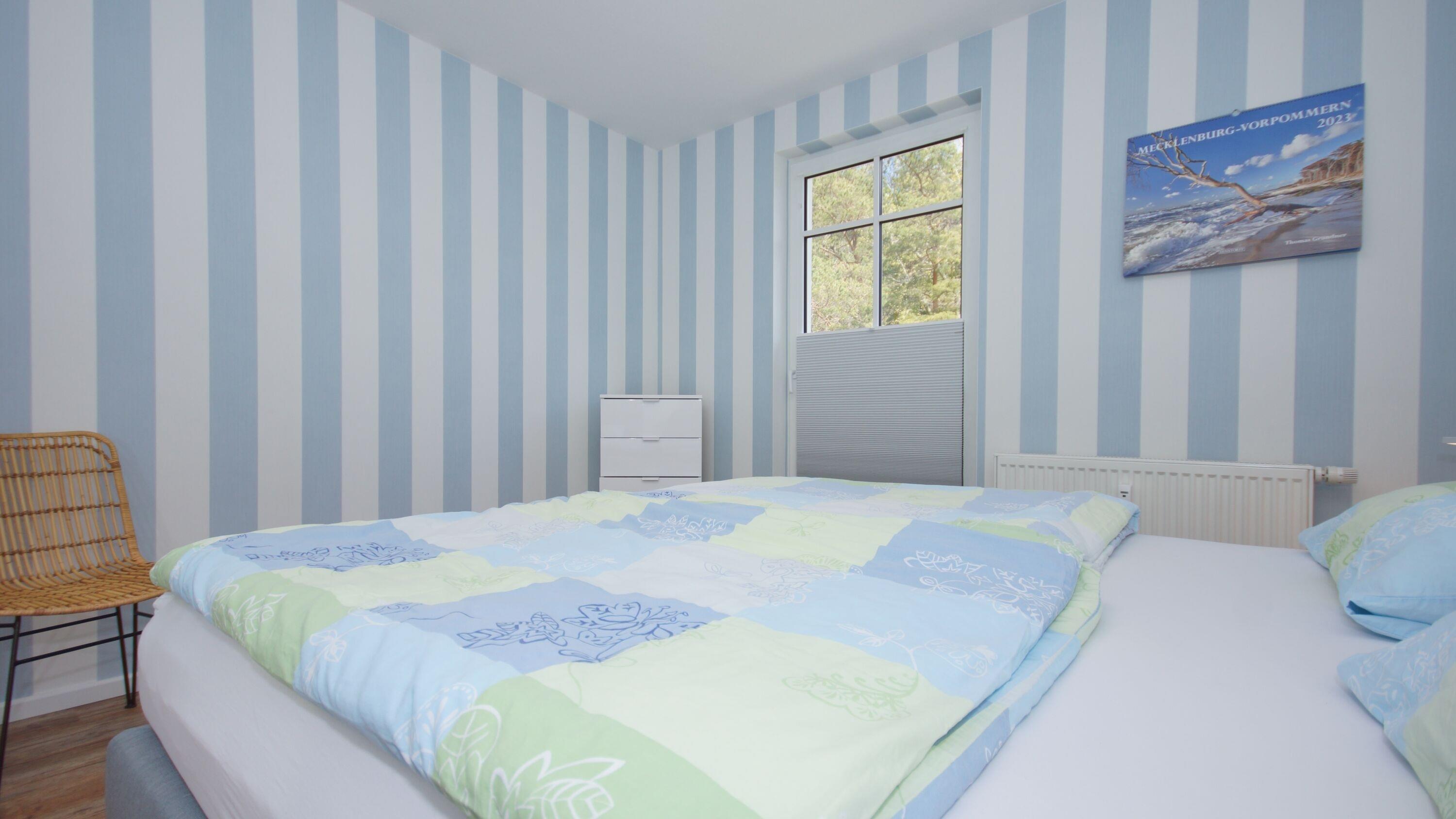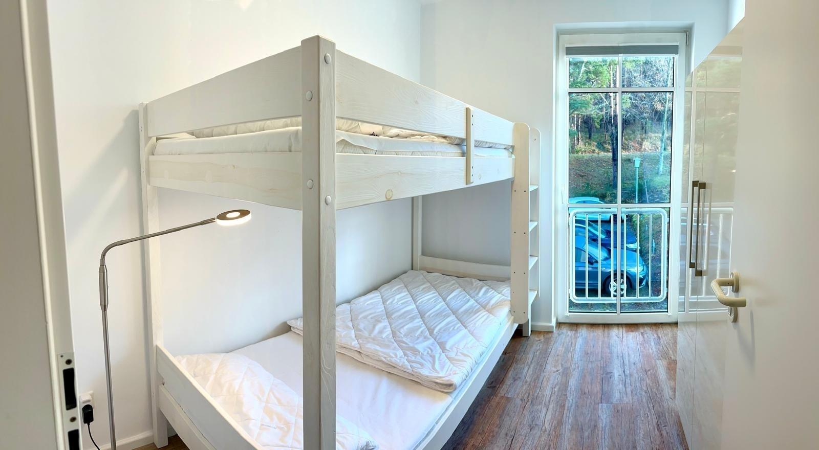 Das eine der beiden Schlafzimmer bietet Ihnen ein großes, gemütliches Doppelbett und einen Kleiderschrank, in dem viel Stauraum für Ihre Lieblingskleidungsstücke vorhanden ist. Ein Etagenbett befindet sich direkt nebenan im zweiten Schlafzimmer.