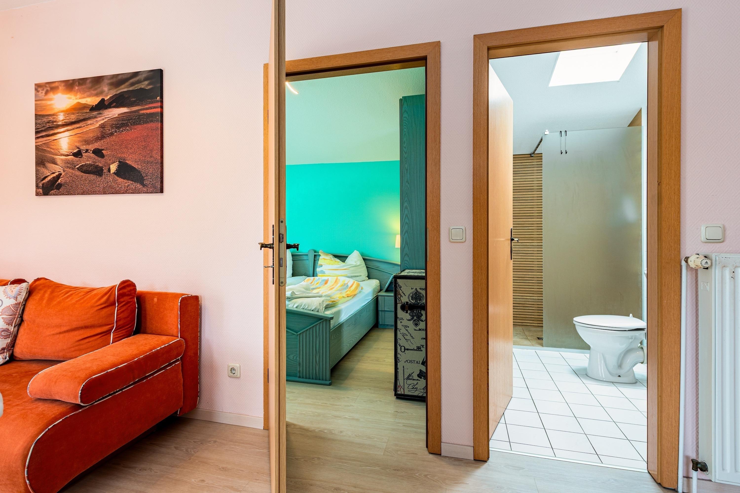 Das Schlafzimmer lädt mit seiner ruhigen Atmosphäre zum Träumen ein – nach einem Tag am Meer, nach einem Waldspaziergang oder einem Cafébesuch im Ort. Im modernen Badezimmer finden Sie alles, was Sie für Ihre tägliche Wohlfühlroutine brauchen – funktional, gepflegt und mit Liebe zum Detail.