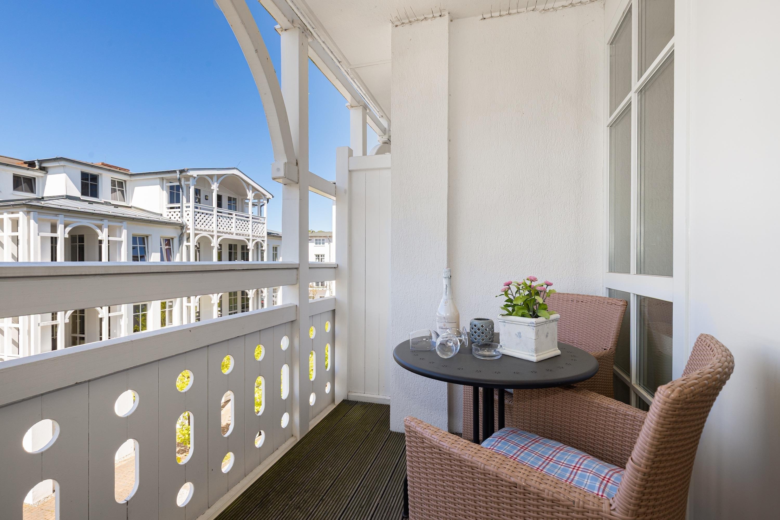 Stilvolle Ferienwohnung in Sellin mit Balkon, WLAN und Tiefgaragenstellplatz für entspannte Tage am Meer.