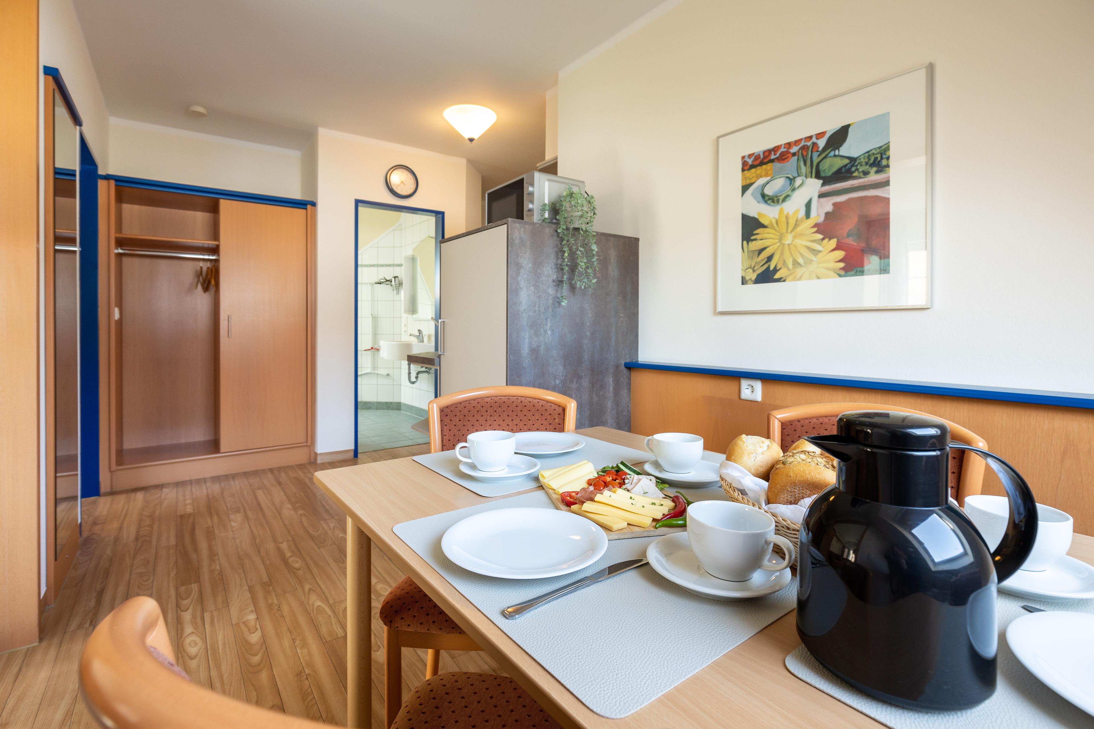 Die Nichtraucherwohnung befindet sich im Vorderhaus der Ferienanlage Margaretha. Zur Anlage gehört pro Wohnung ein Parkplatz auf dem Hof, sowie ein gemeinschaftlicher Fahrradraum.