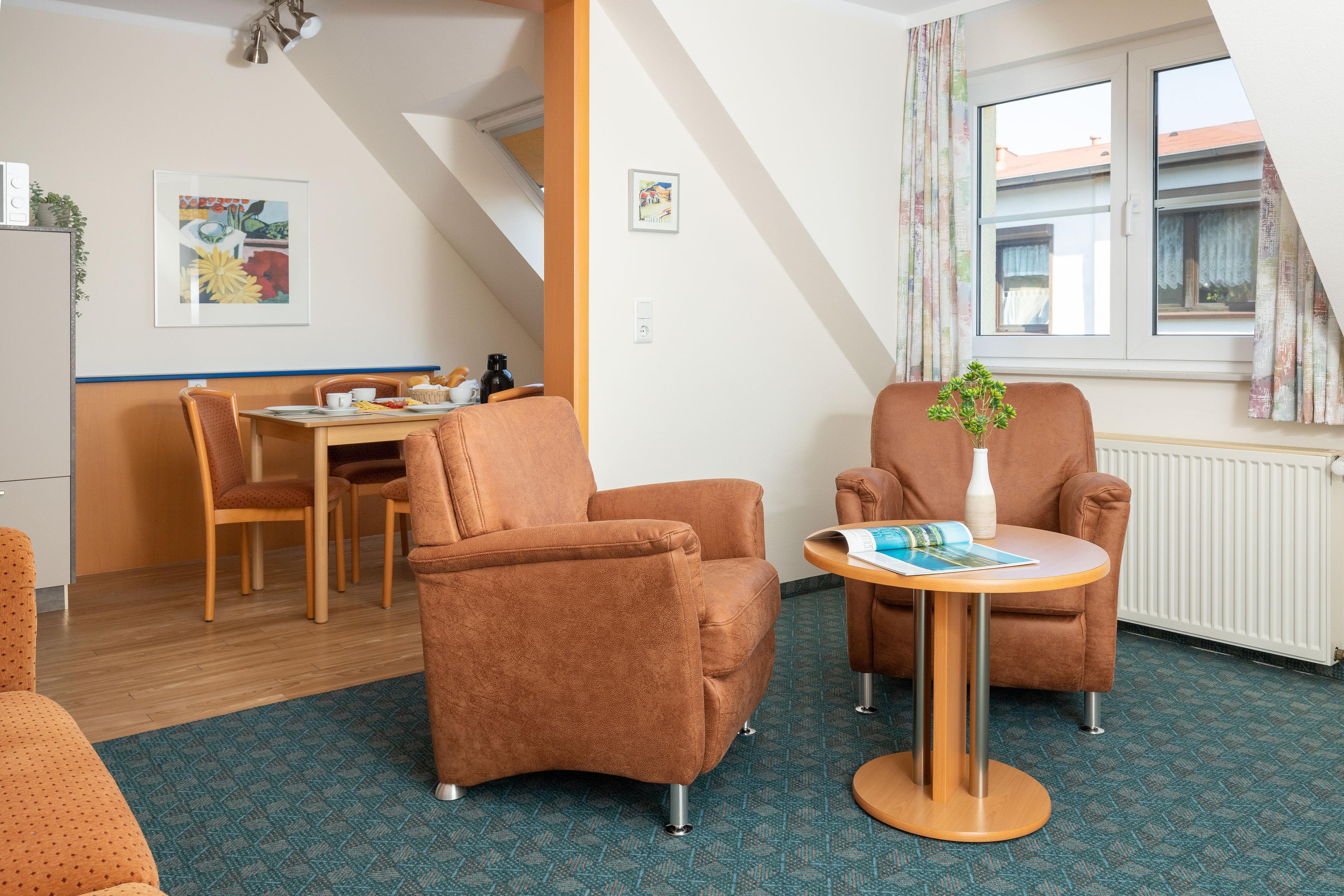 Die freundlich eingerichtete Wohnung 2 in der Ferienanlage Margaretha ist ca. 55 m² groß und für bis zu 4 Personen ausgelegt.