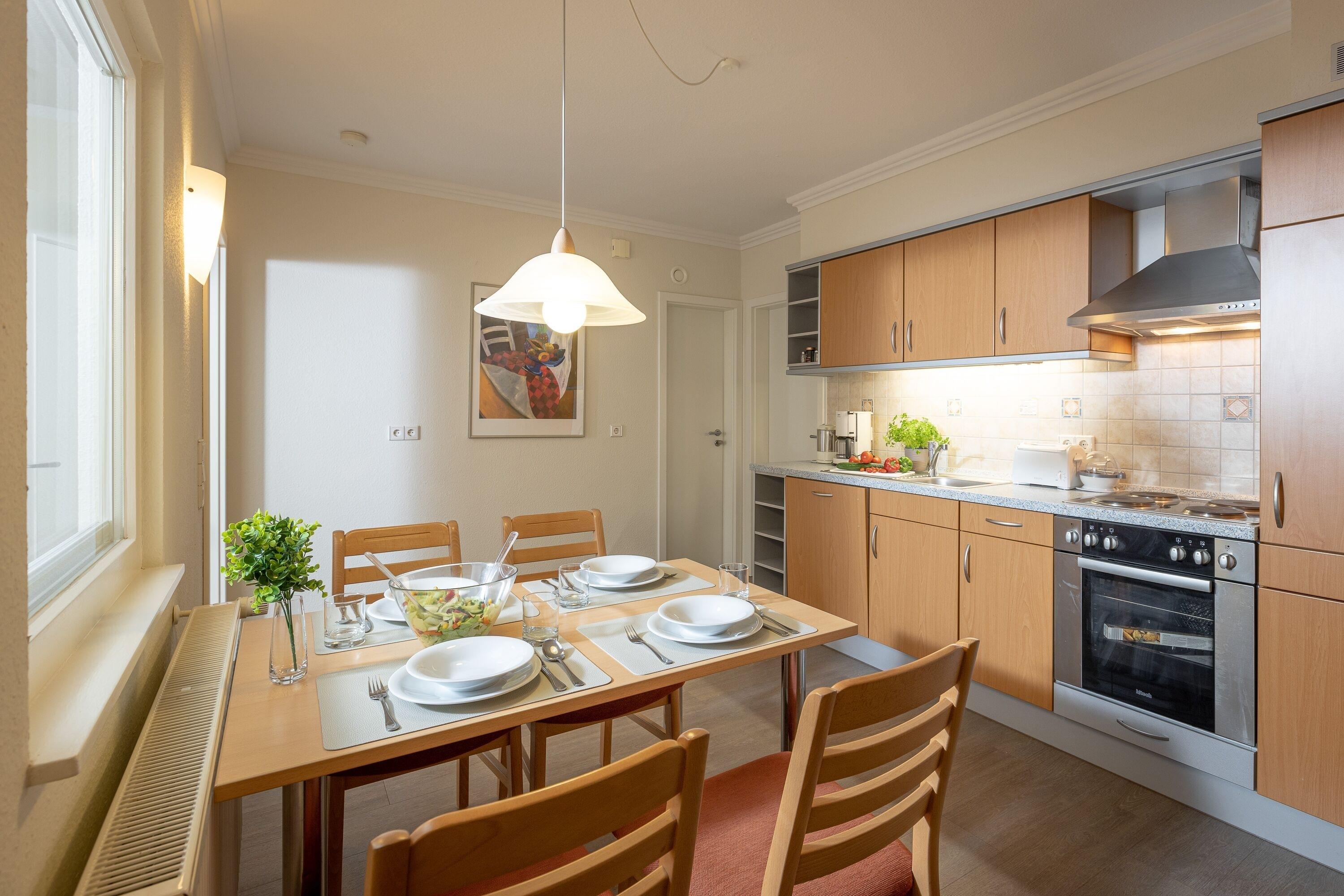 Die freundlich eingerichtete Wohnung 6 in der Ferienanlage Margaretha ist ca. 52 m² groß und für bis zu 4 Personen ausgelegt.