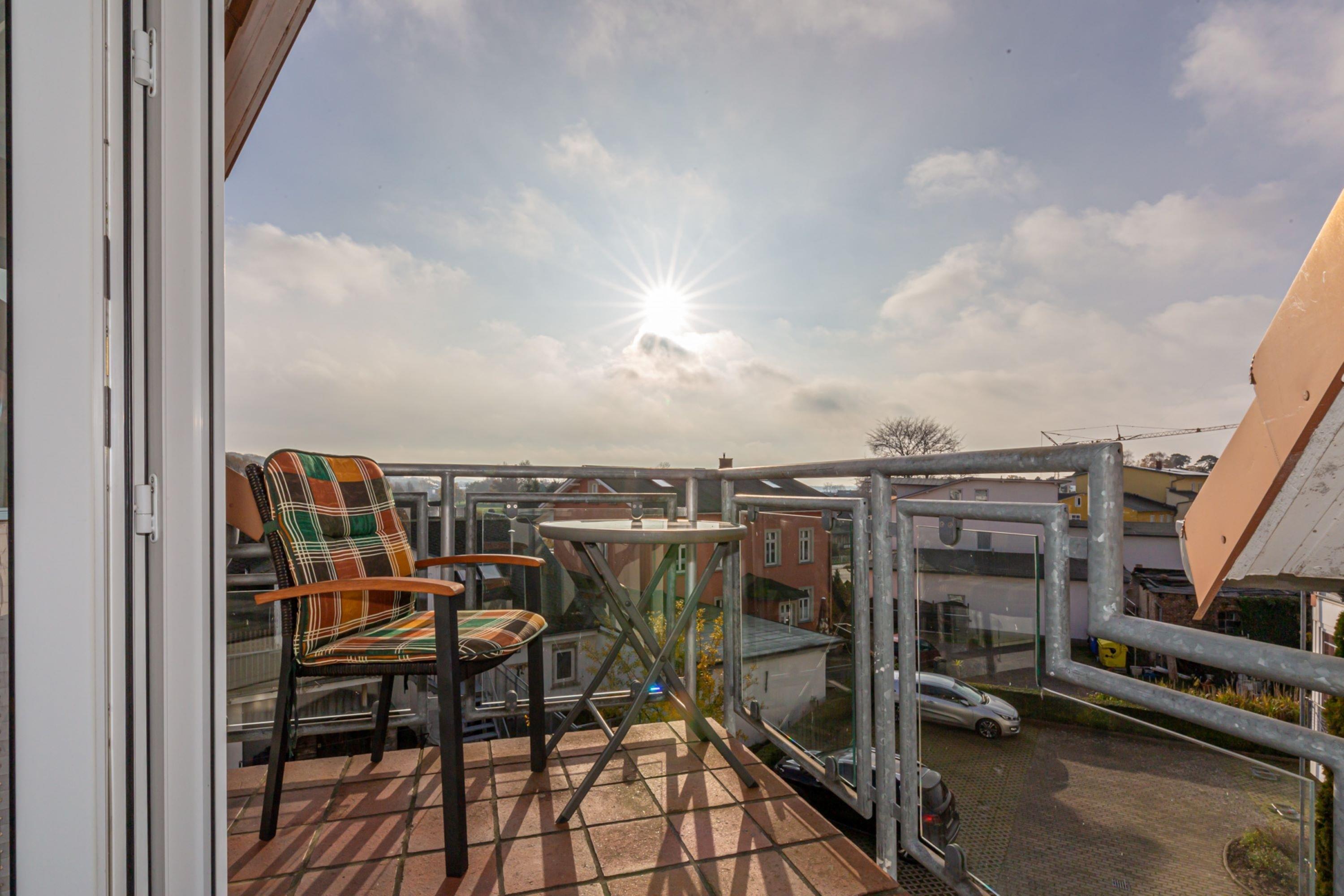 Moderne Dachgeschosswohnung mit Balkon im Herzen von Sellin, ideal für bis zu 4 Personen.