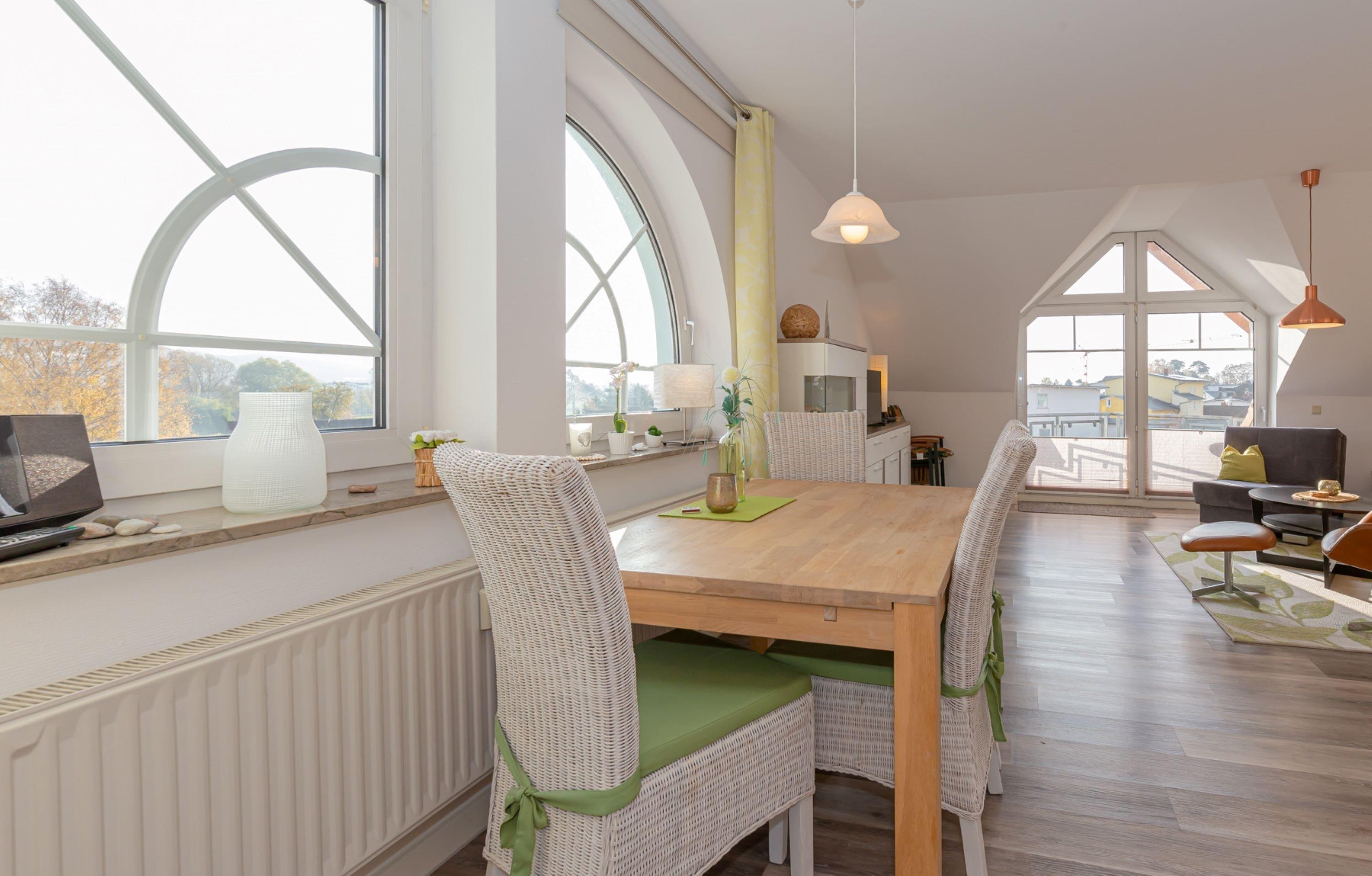 Des Weiteren befindet sich im Wohnbereich ein ausladender Essbereich mit traumhaftem Blick über die Granitzer Straße in Sellin.