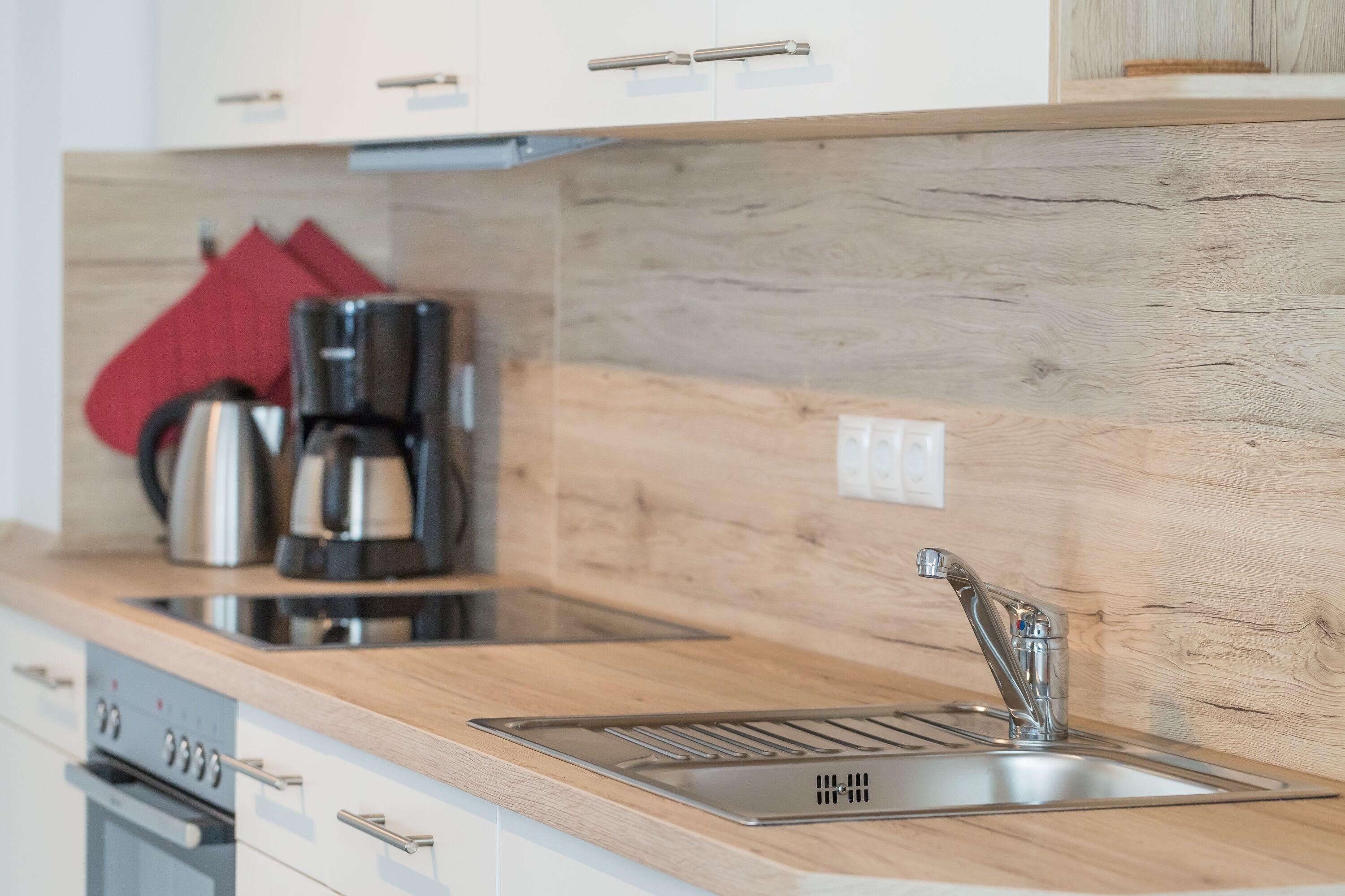Die voll ausgestattete Küche, welche sich offen an den Wohnbereich anschließt, stellt Ihnen alles zur Verfügung, was Sie für einen Kochabend benötigen; neben der Geschirrspülmaschine, dem Kühlschrank und dem Backofen erwarten Sie zahlreiche Küchenkleingeräte. Das gemütliche Doppelbett ist mit hochqualitativen Matratzen ausgestattet und auch ein Fernseher ist vorhanden. Der geräumige Kleiderschrank bietet genügend Platz für Ihre Lieblingskleidungsstücke.