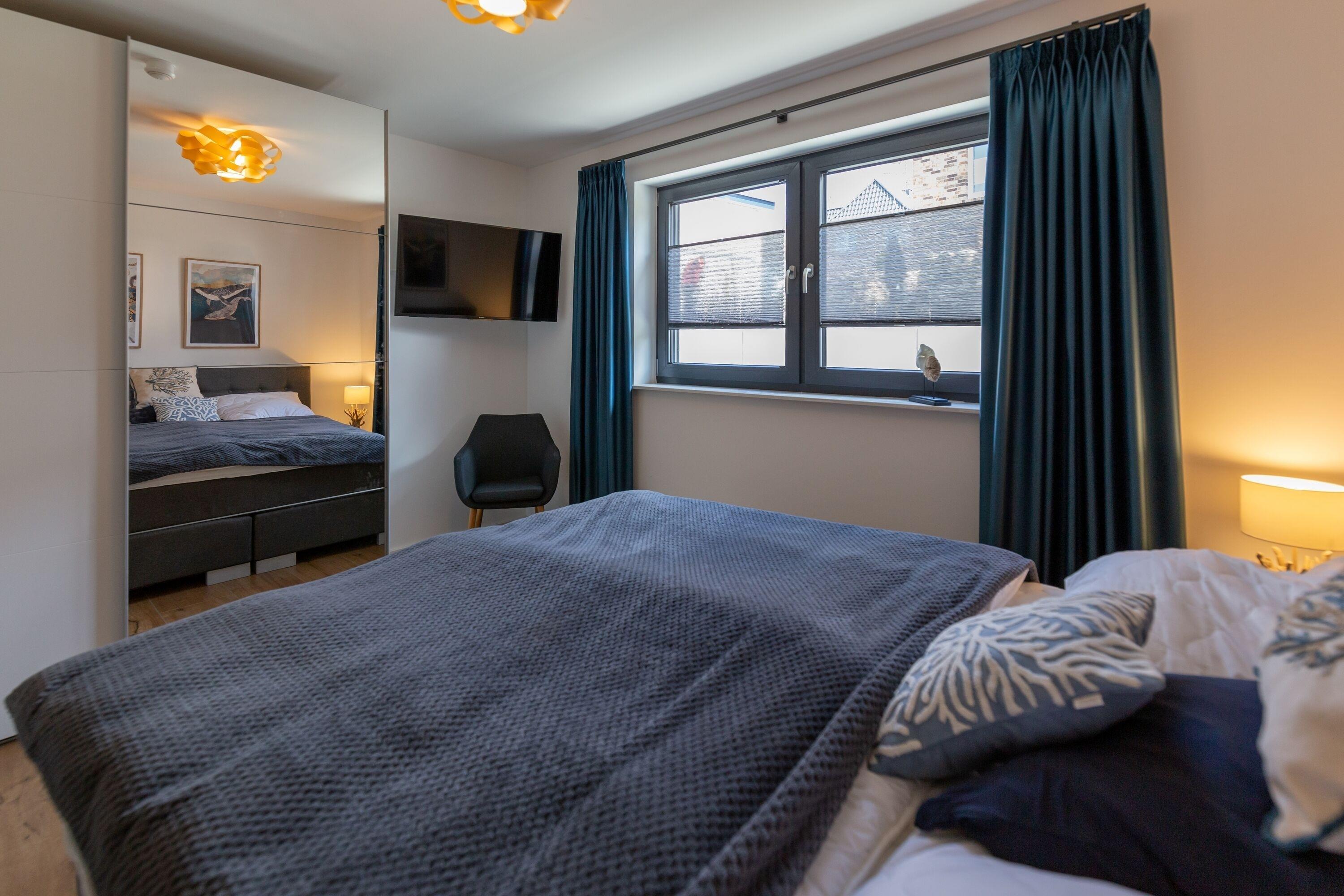 Drei moderne und gemütliche Schlafzimmer stehen Ihnen als Gäste in der Ferienwohnung Mare in Sellin zur Verfügung und sind mit jeweils einem großen Boxspringbett (180x200cm) ausgestattet. In allen Schlafzimmern befinden sich außerdem Kommoden und Kleiderschränke zur Verwahrung Ihrer Lieblingskleidungsstücke.