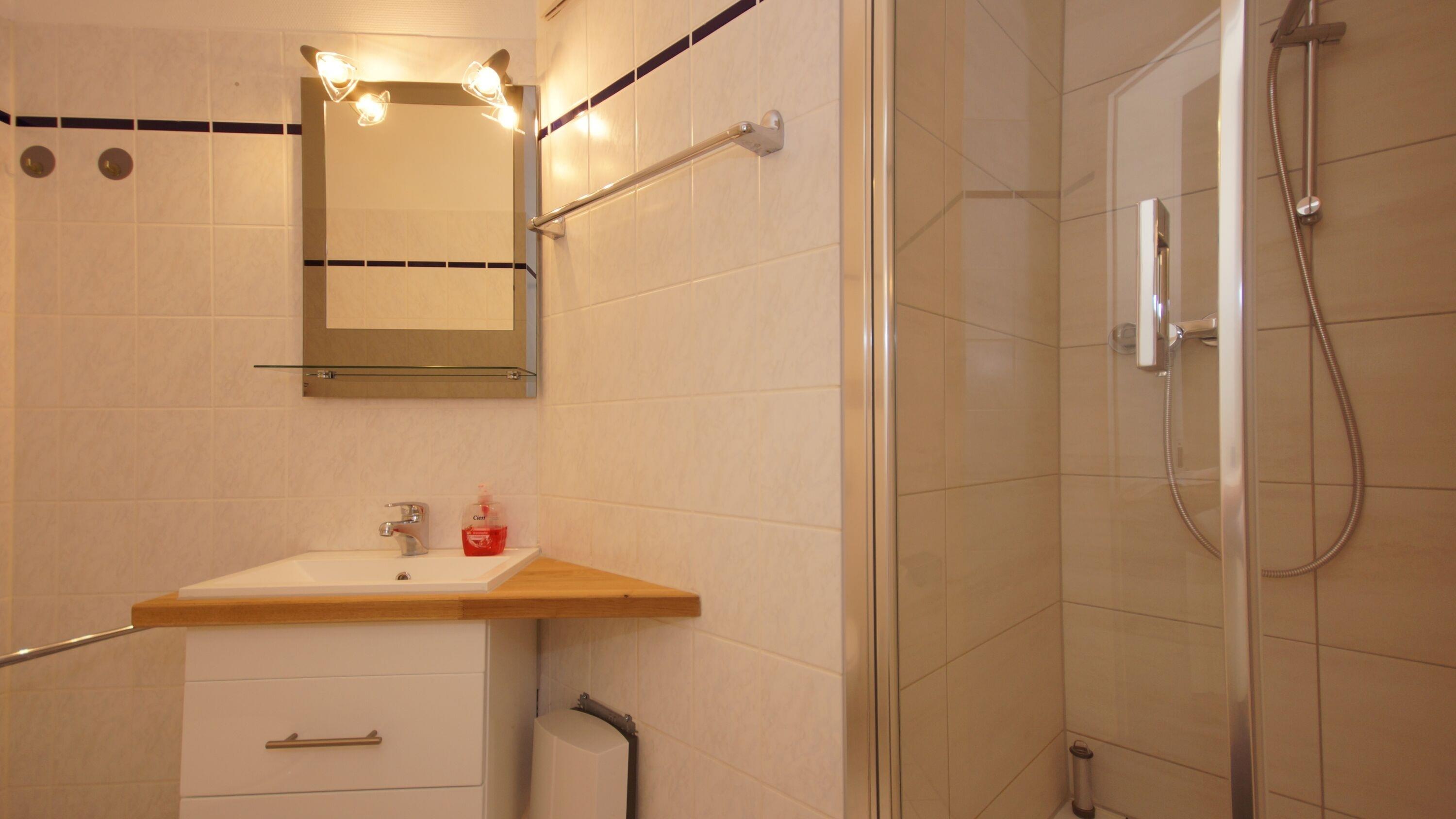 Der freundliche Balkon in Süd-West Ausrichtung freut sich auf Ihren Besuch. Komfortable Gartenmöbel werden Ihnen ebenfalls zur Verfügung gestellt. Das hell erleuchtete Badezimmer verfügt über eine Dusche, ein WC und ein Waschbecken mit Spiegel.