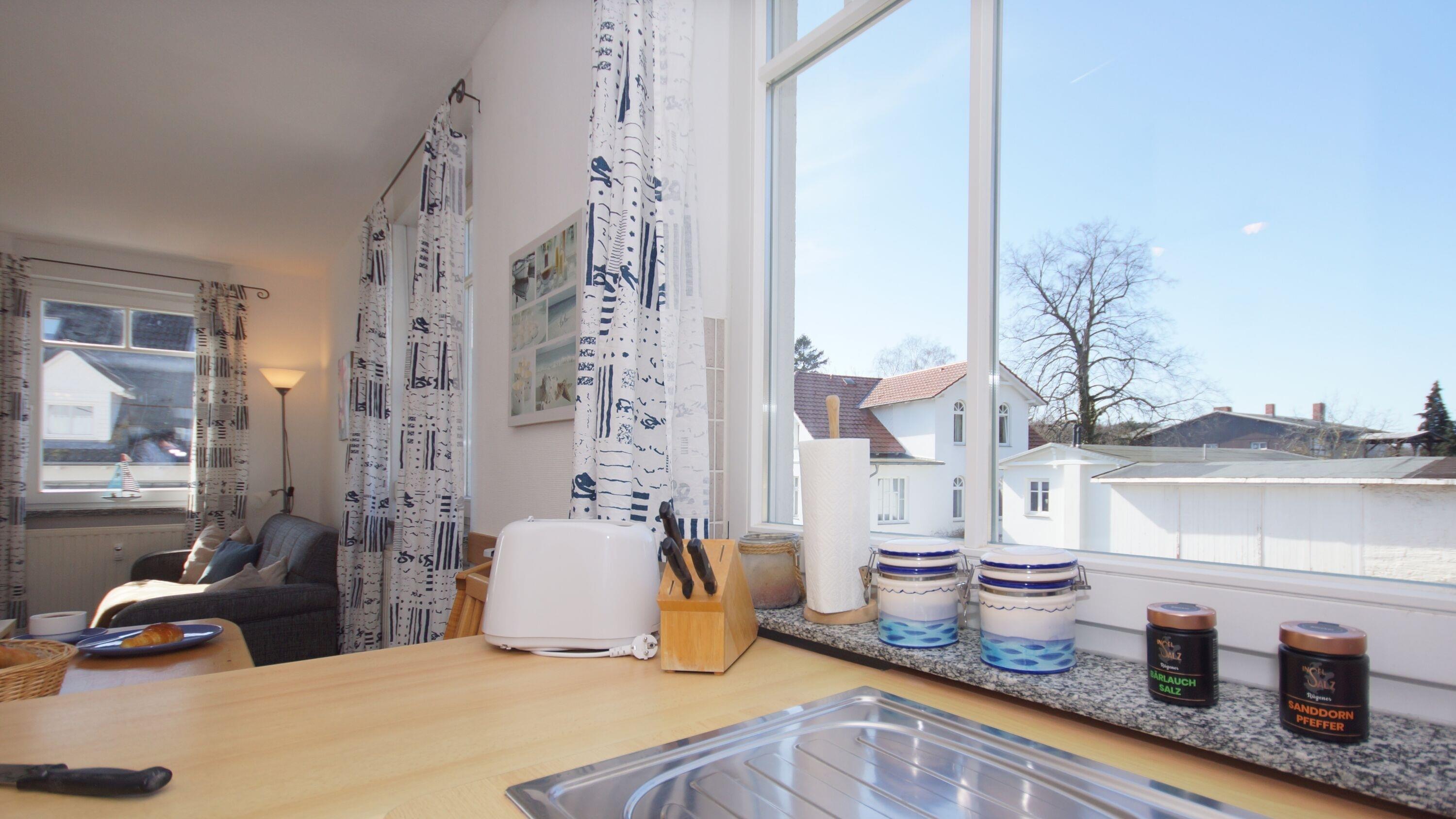 Auf 2 Zimmern teilt sich die rund 50 qm Ferienwohnung in Sellin in einem Schlafzimmer mit einem gemütlichen Doppelbett und einem kombinierten Wohn- und Essbereich mit offener, voll ausgestatteter Küche auf. Im Wohnzimmer steht Ihnen neben einem Flachbild-TV eine gemütliche und hochwertige Sofagarnitur zur Verfügung, die auch als Aufbettungsmöglichkeit geeignet ist. Die offene Küche lädt zu kulinarischen Kochabenden ein.