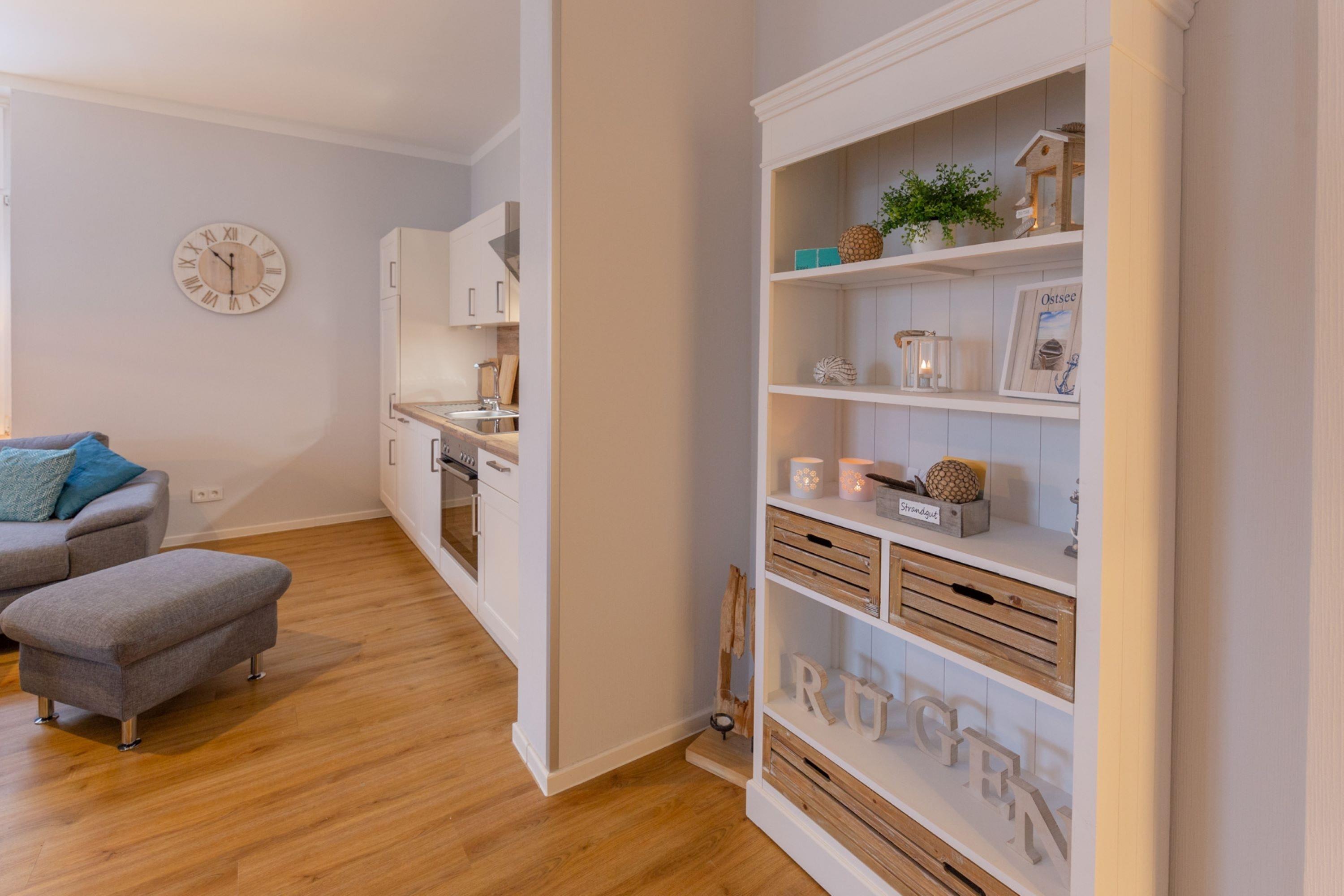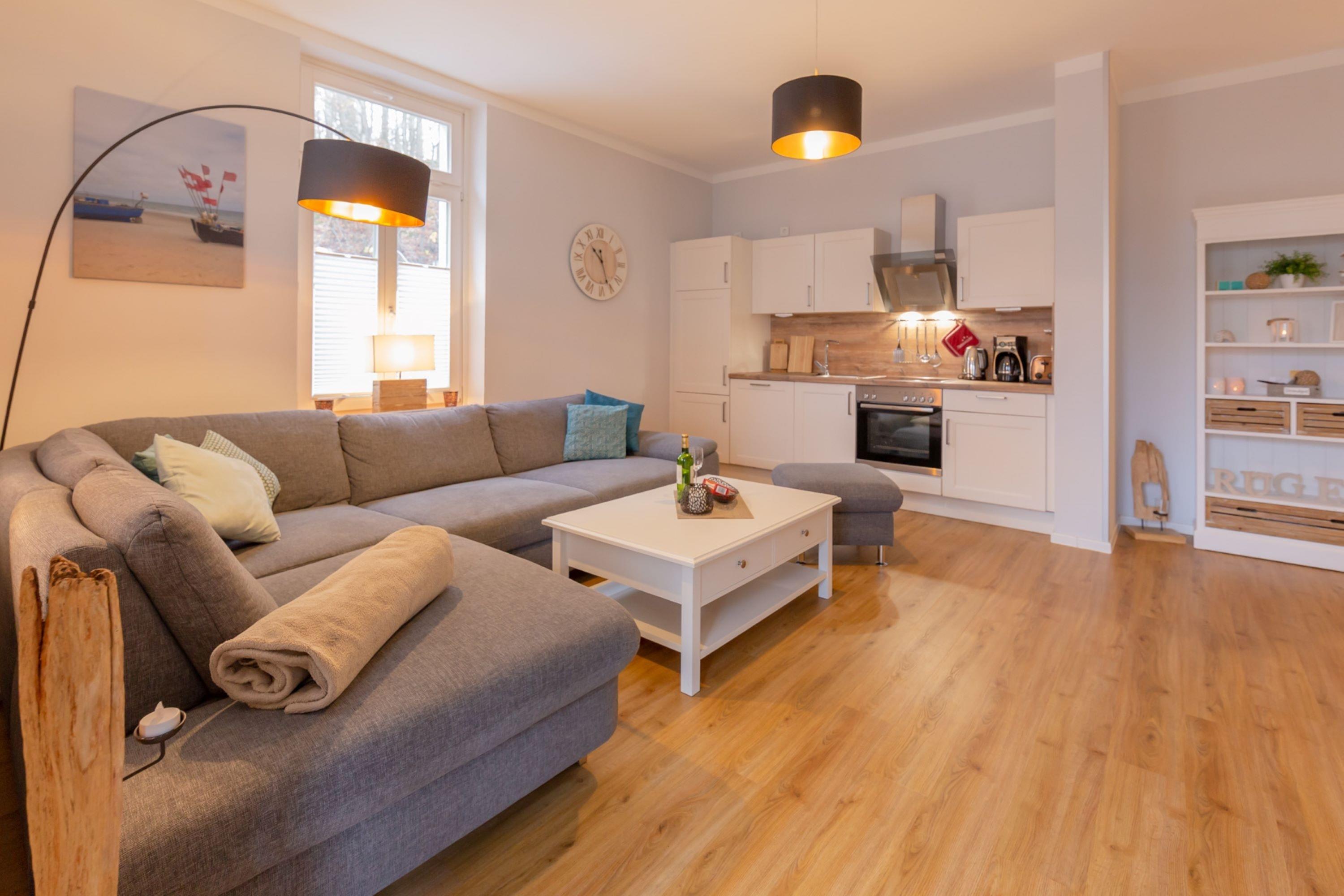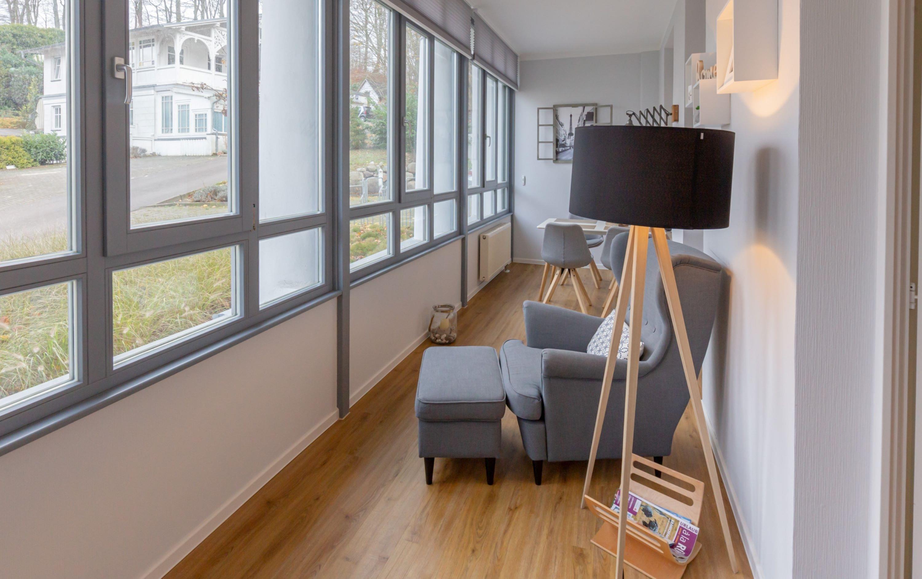 Gemütliche Ferienwohnung Muschelsucher in Sellin mit modernem Wohnzimmer, Wintergarten und kostenfreiem WLAN für einen entspannten Strandurlaub.