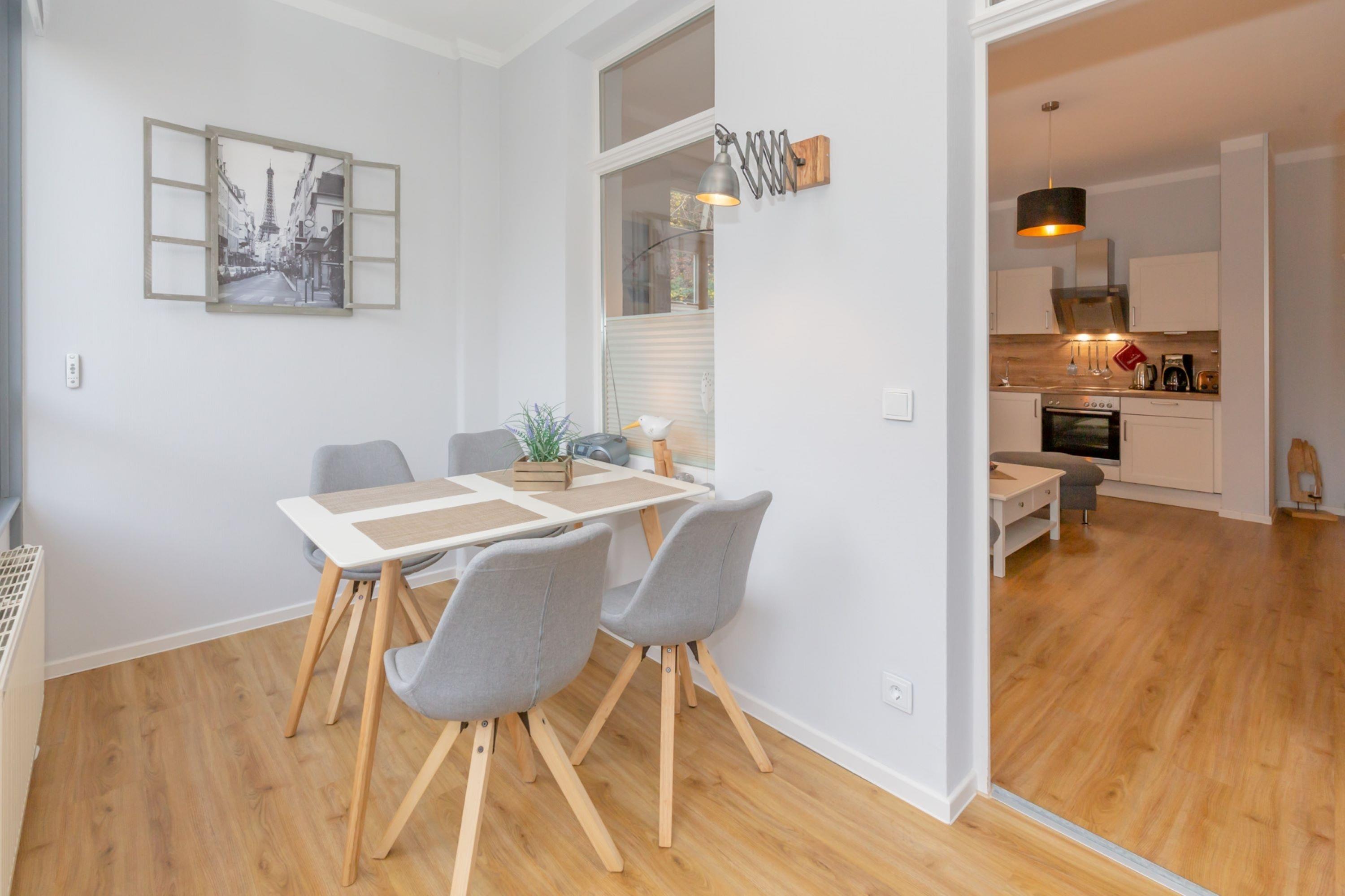 Die gemütliche Ferienwohnung Muschelsucher in der imposanten Villa Odin bietet auf 63m² alles, was man zu einem entspannten Strandurlaub benötigt.