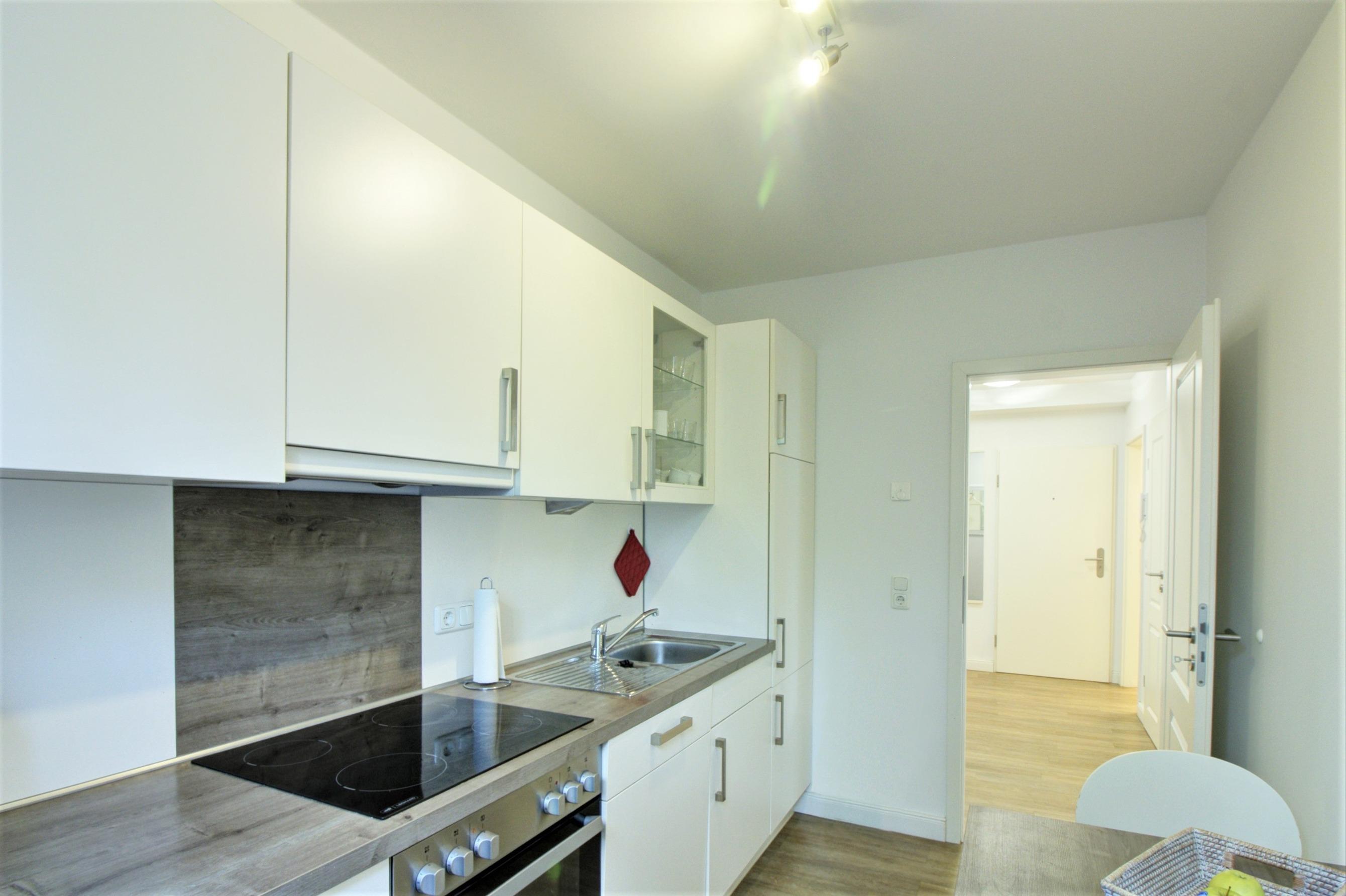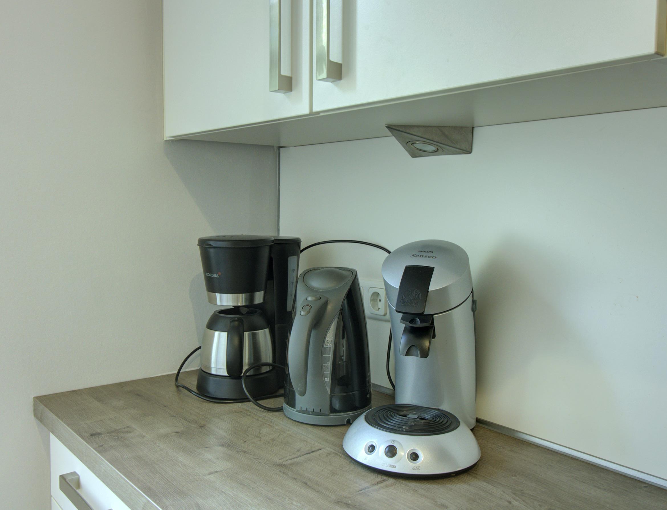 Die moderne Küche bietet Ihnen alles, was Sie für einen kulinarischen Kochabend benötigen; einen Kühlschrank, ein 4-Platten Cerankochfeld, einen Backofen, eine Mikrowelle und allerlei Küchenkleingeräte (Wasserkocher, Kaffeemaschine ...).