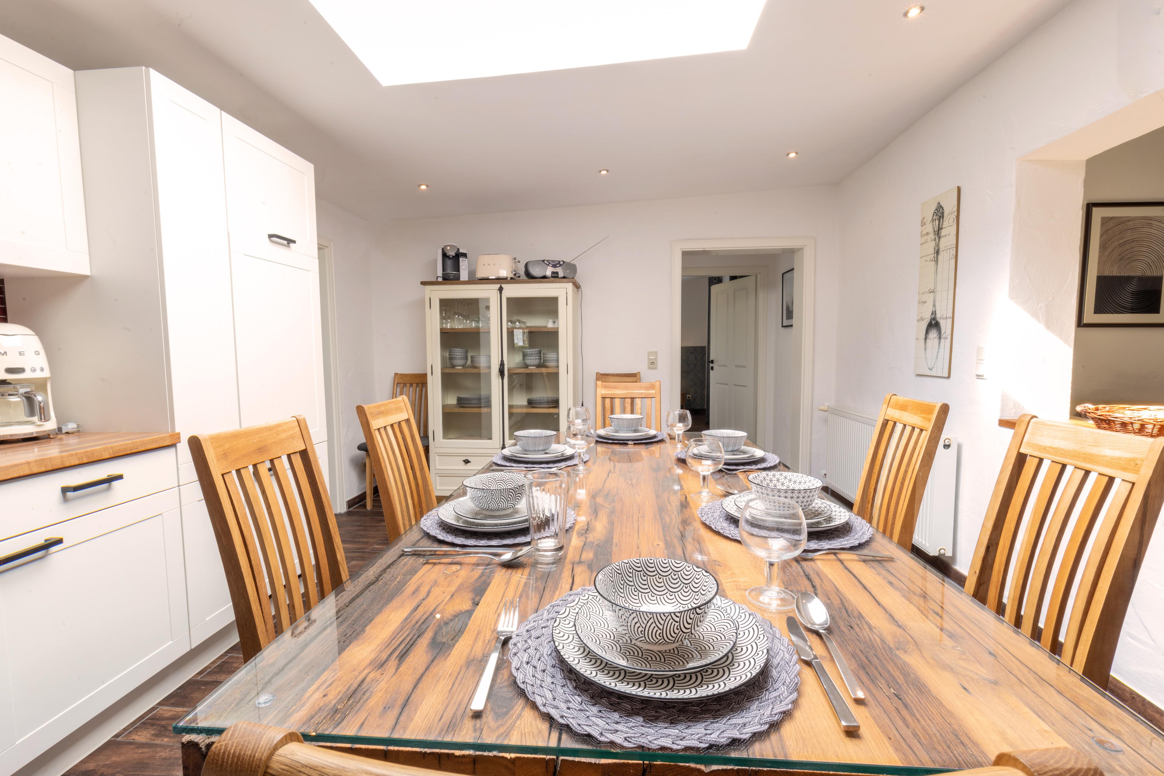 Unweit vom Zentrum des Ostseebad Sellin, erwartet Sie dieses gemütliche Domizil. In Bungalow-Bauweise errichtet, begrüßt Sie das "Hus Oetti" auf gut 130 qm Wohnfläche. Mit insgesamt 4 Schlafzimmern, 2 Badezimmern, einem Flur und Ankleidebereich sowie einem gemütlichen Wohnzimmer (mit offener Küche und Kaminofen) bietet dieses tolle Domizil Platz für bis zu 8 Personen. Auch Ihre 4-beinigen Mitbewohner dürfen gerne im "Hus Oetti" residieren. Für Ihre PKW stehen 2-3 Stellplätze auf dem Grundstück kostenfrei zur Verfügung. Die große Terrasse des Hauses beherbergt neben den Sitzmöbeln auch einen tollen Strandkorb für bis zu 3 Personen und lädt, insbesondere in den Sommermonaten, zum gemütlichen Verweilen und Grillen ein. Sind Sie und Ihre Familie/Freunde auf der Suche nach einem gemütlichen Urlaubsdomizil inmitten des Ostseebad Sellin? Dann freuen wir uns darauf, Sie künftig als Gäste des "Hus Oetti" begrüßen zu dürfen.