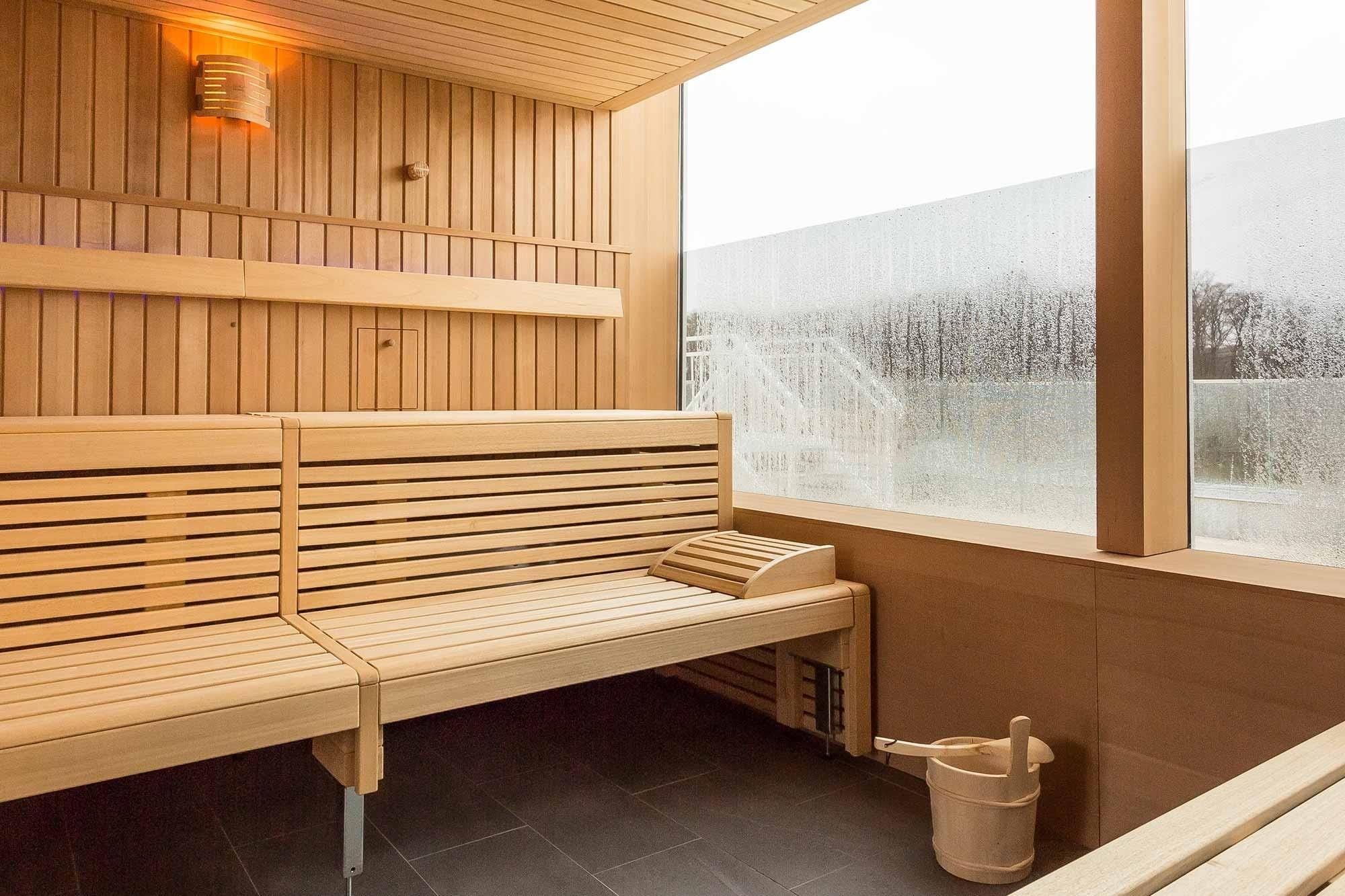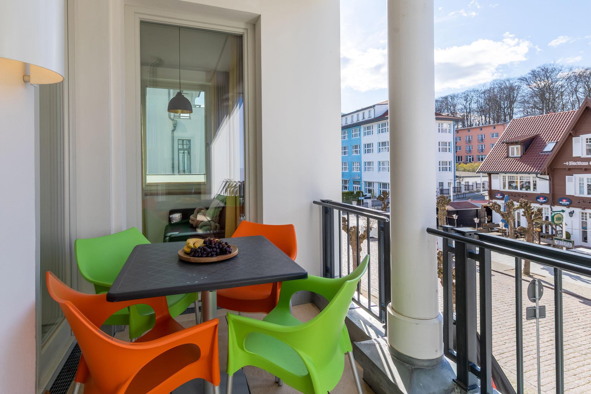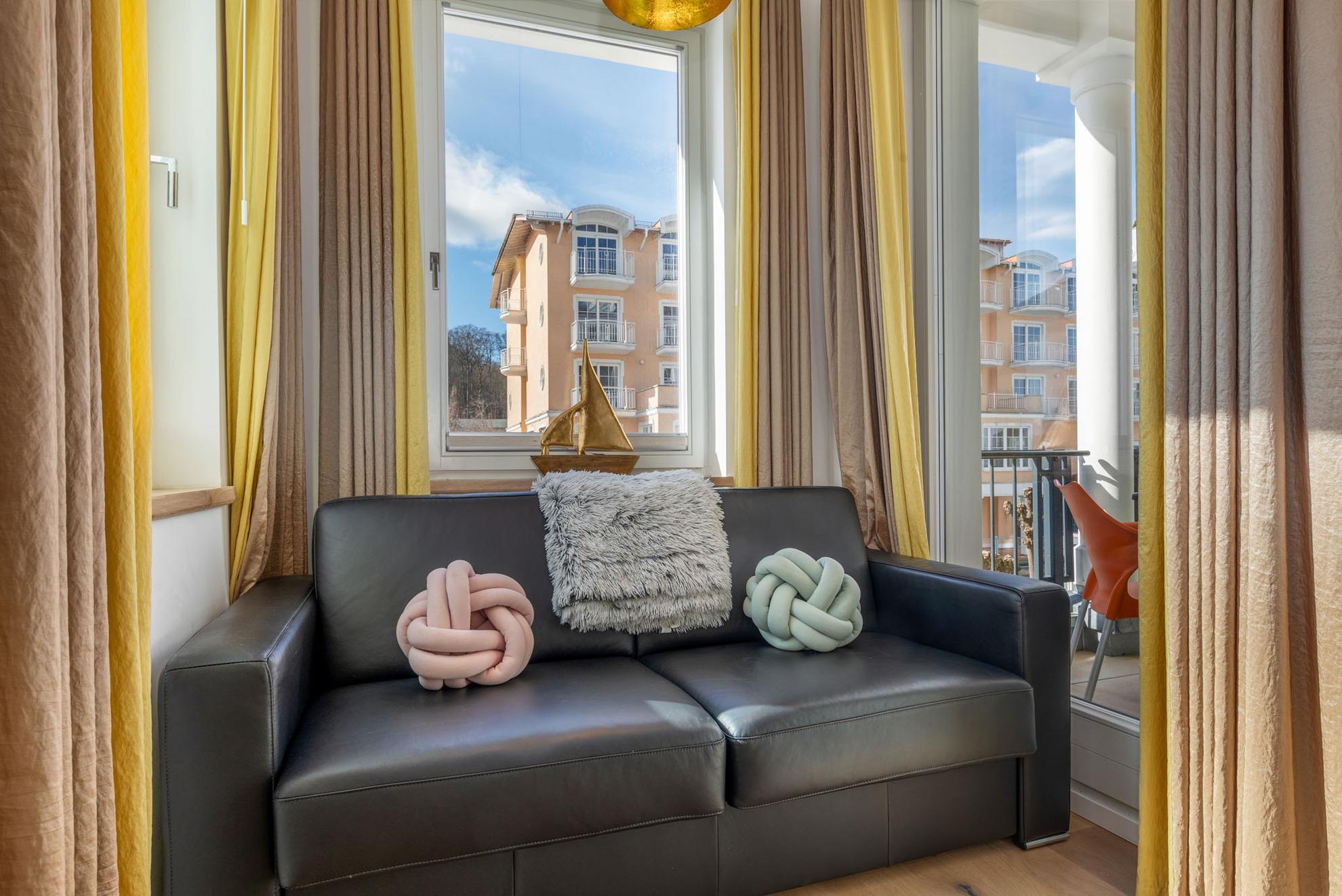 Die Gäste des Hauses haben die Möglichkeit, den exklusiven Wellnessbereich, mit zwei Saunen und einem 29 Grad warmen Pool zu nutzen. Vom 5. Stock des Hauses aus genießen Sie einen einzigartigen, wunderschönen Panoramablick auf die traumhafte Ostsee, die Kreidefelsen und die Seebrücke Sellin.