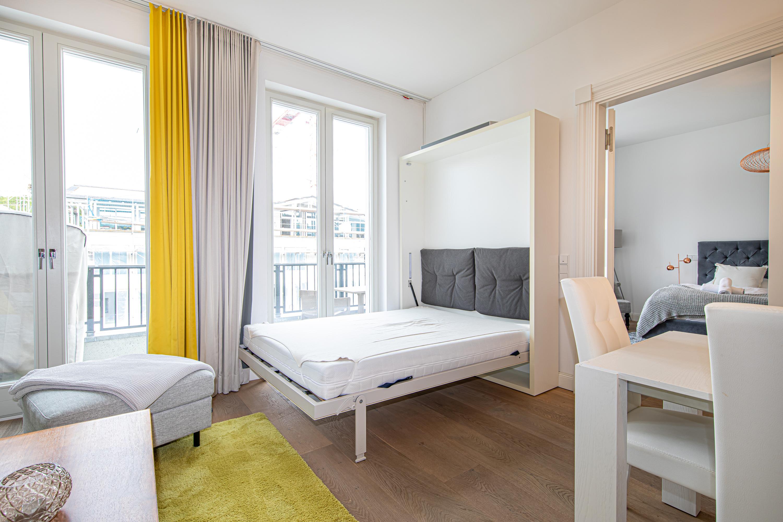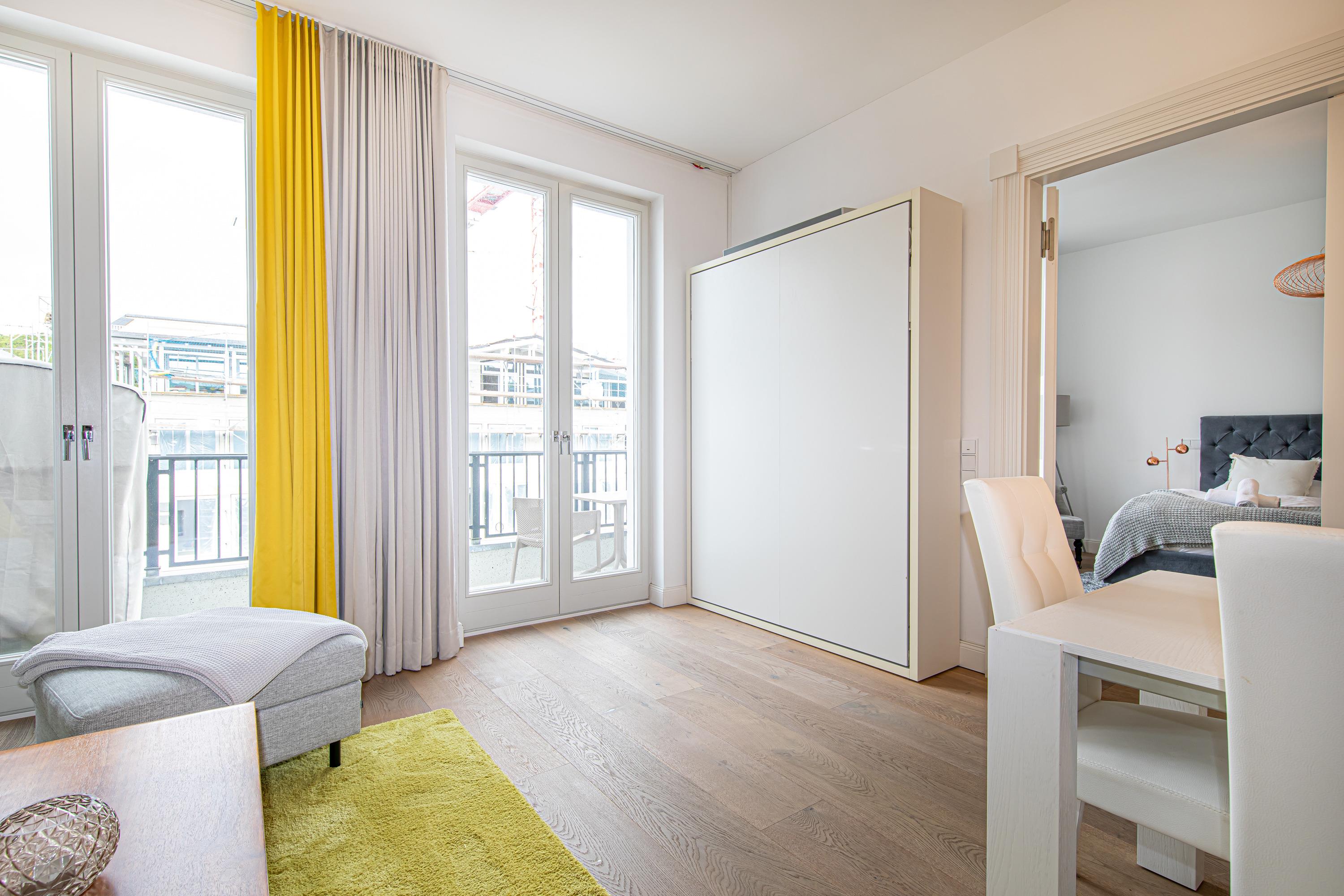 Die Ferienwohnung FIRST Galene befindet sich in der 4. Etage des Hauses FIRST Sellin und bietet auf 89 m² Platz für maximal 6 Personen. Sie verfügt über ein Schlafzimmer, ein hochwertiges Schrankbett im Wohnzimmer, sowie ein ausklappbares Etagenbett und einem Badezimmer, wodurch hier Platz für die ganze Familie vorhanden ist. Zur Ausstattung gehört ein Tiefgaragenstellplatz um Ihr Auto sicher unterzubringen. Die modern eingerichtete Küchenzeile ist mit einer Spülmaschine ausgestattet, um Ihnen das lästige Abwaschen zu ersparen.
