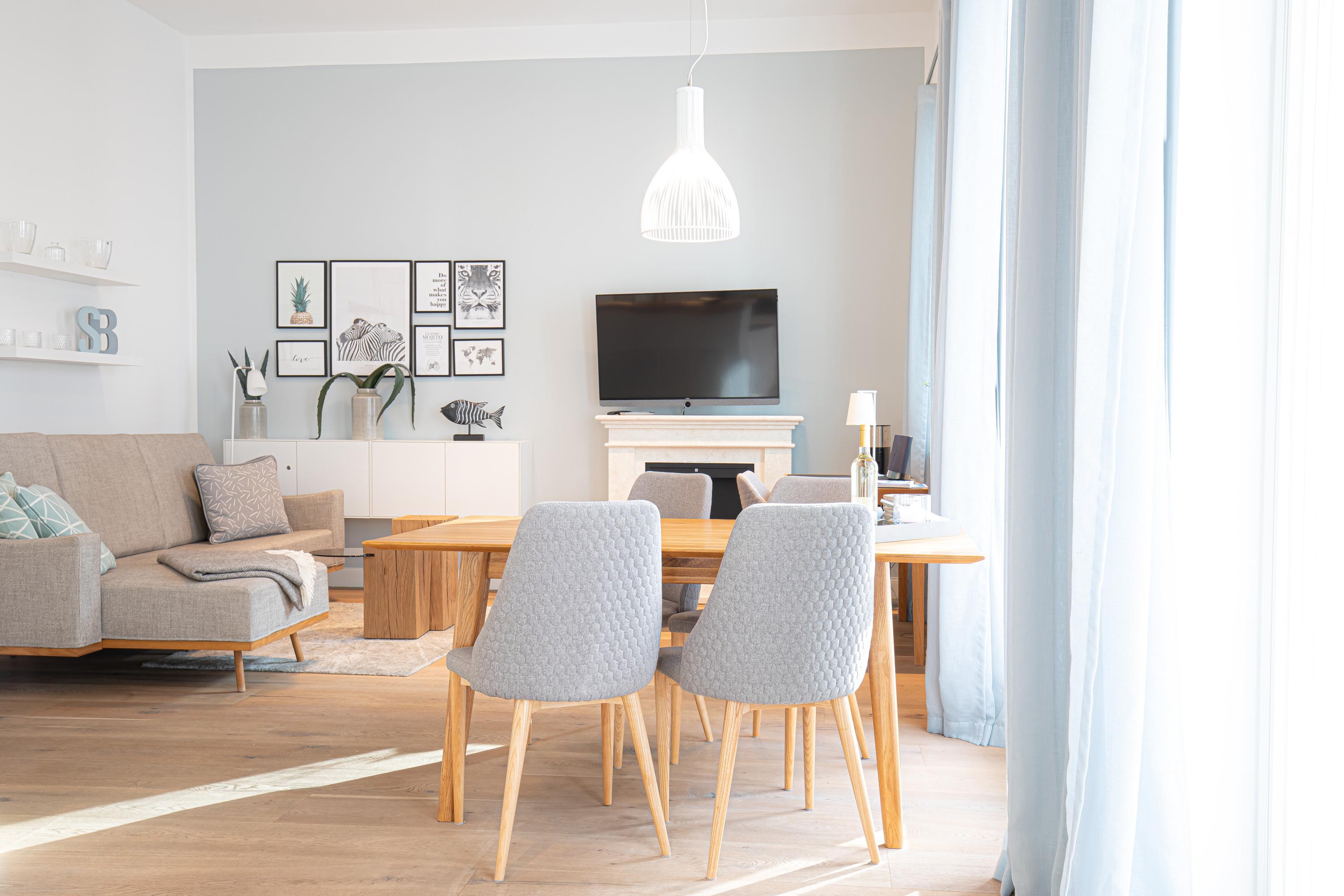 Die Ferienwohnung mit dem Namen "FIRST Sanddorn" bietet auf 55 m² [nbsp]Wohnfläche ausreichend Platz für 2 Personen. Sie befindet sich in der 1. Etage des Hauses "FIRST Sellin" und verfügt neben einem großen Wohn-, Essbereich und Balkon auch über 1 Schlafzimmer und 1 Badezimmer. Zur Ausstattung dieser schönen Wohnung gehört selbstverständlich auch ein Tiefgaragenstellplatz. Eine Kaffeemaschine und eine Spülmaschine stehen Ihnen in der Küchenzeile zur Verfügung. Zusätzlich zum saisonal geöffneten Außenpool, steht Ihnen ganzjährig und kostenfrei ein Sky-Infinitypool (Indoor auf dem Dach des Gebäudes) zur Verfügung. Außerdem gibt es einen WLAN Anschluss, der Ihnen eine unkomplizierte Internetnutzung ermöglicht. Entspannung finden Sie auch im hauseigenen Saunabereich, welcher ebenfalls kostenfrei zur Ausstattung gehört. Die Ferienwohnung ist sowohl für junge Familien als auch für Radfahrer geeignet. Ebenso ist auch ihr Haustier ein gerne gesehener Gast. Die Ortsmitte ist nur ca. 100 m entfernt und der Strand ist nur ca. 80 m entfernt. Ebenso befinden sich eine Vielzahl sehr guter Restaurants in unmittelbarer Nähe. Hier bleiben also keine Wünsche offen.