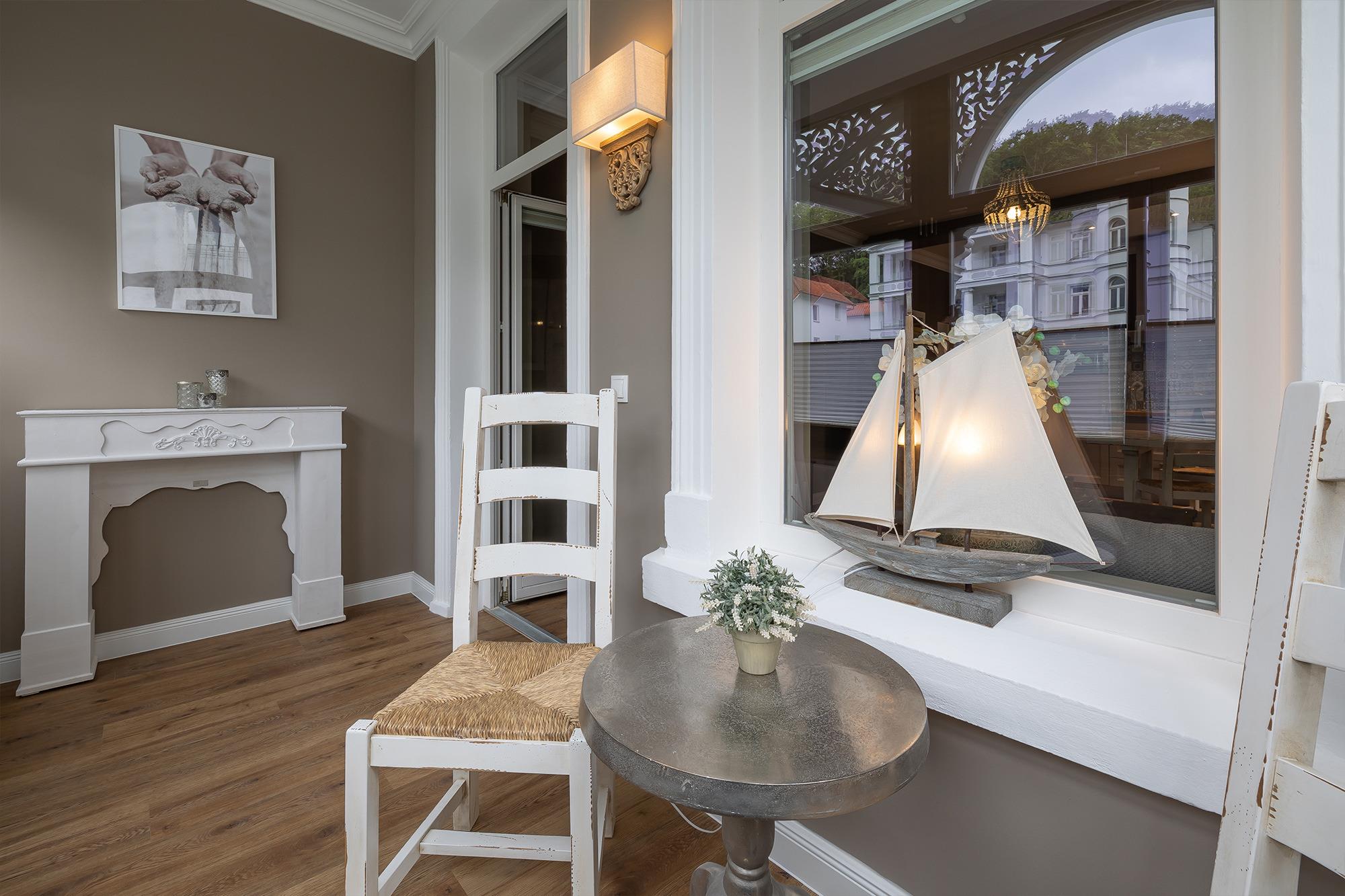 Nur knapp 100 Meter vom Hauptstrand entfernt und in unmittelbarer Nähe zum Kurpark am Friedensberg erwartet Sie das Haus am Meer. Architektonisch greift das Haus die Stilelemente der Bäderarchitektur auf und befindet sich direkt an der Wilhelmstraße. Im Jahre 1999 wurde die Villa aufwendig saniert und liebevoll restauriert.