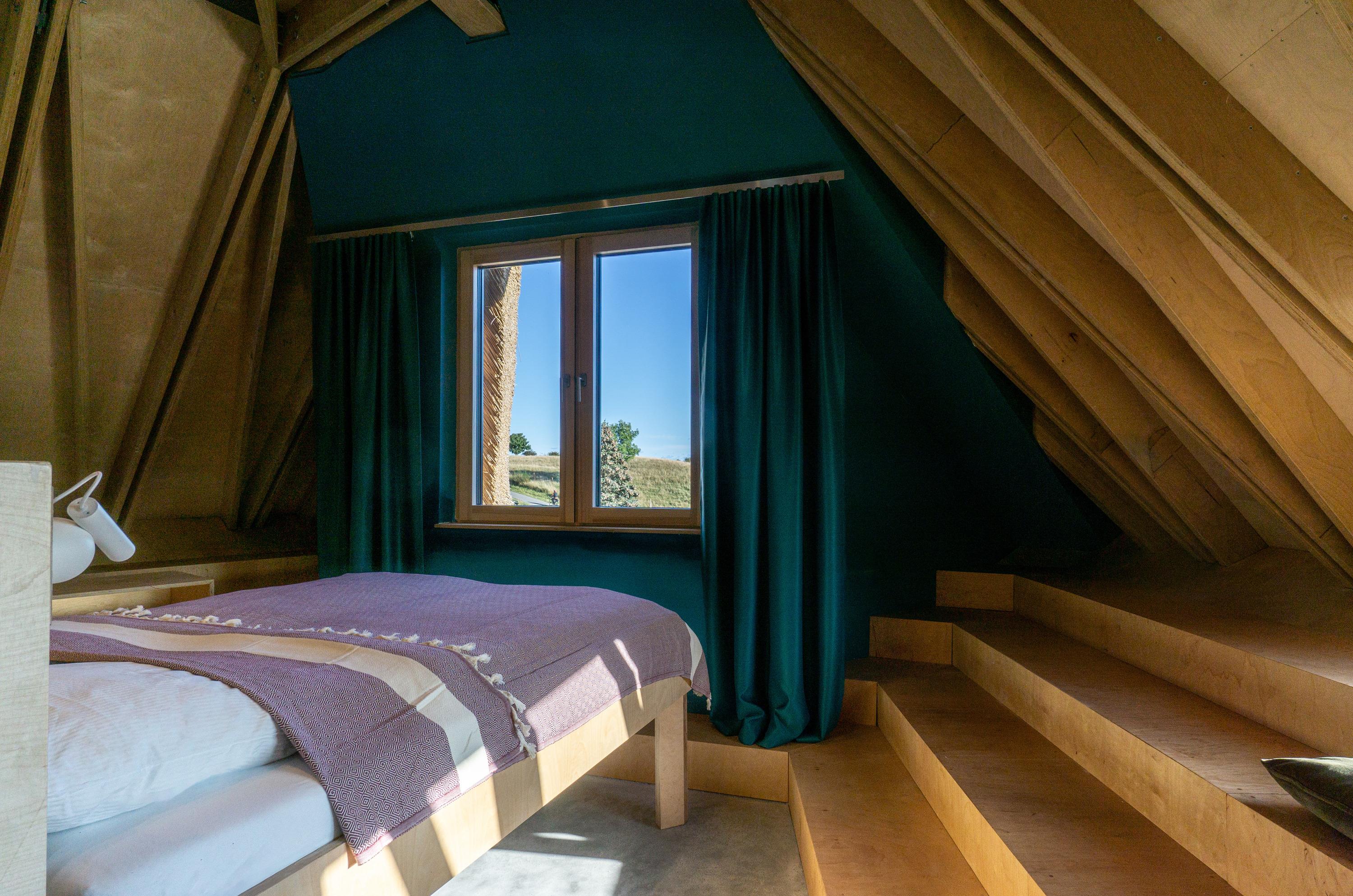 Die hochwertige Architektur des Hauses, inspiriert von den historischen Bootslagern der Fischer, verbindet modernes Design mit traditioneller Handwerkskunst. Im Inneren bleibt die tragende Struktur, die an die Spanten und Beplankung von Booten erinnert, sichtbar und schafft eine einzigartige Atmosphäre. Das Haus ruht wie auf einem Podest, sodass Sie von jeder Seite aus die atemberaubende Weite und Schönheit der Insel Rügen genießen können.