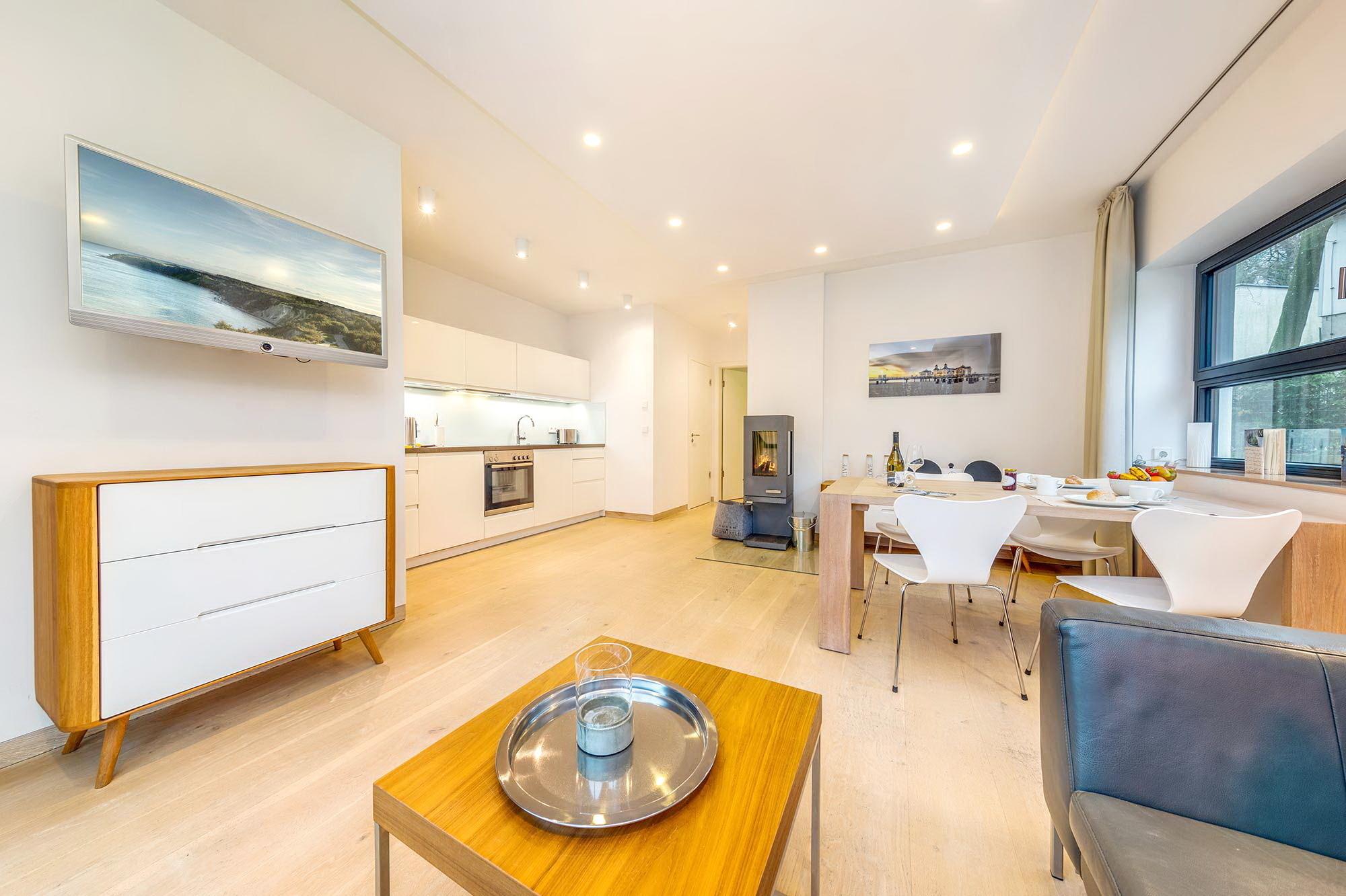 Die luxuriöse Ferienwohnung Achterdeck in Sellin bietet auf 60m² Komfort, Sauna und Terrasse für erholsame Urlaubstage.