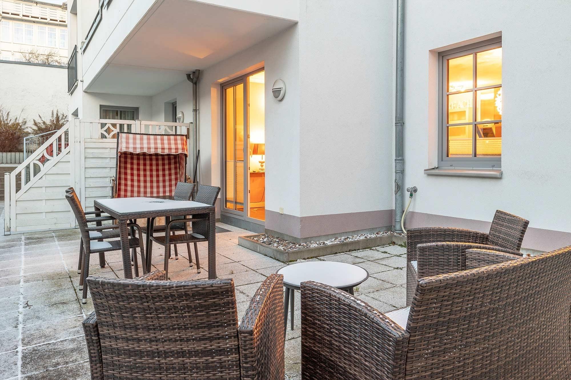 Gemütliche 80 m² Ferienwohnung in Sellin mit moderner Ausstattung und Terrasse, ideal für Familien und kleine Haustiere.