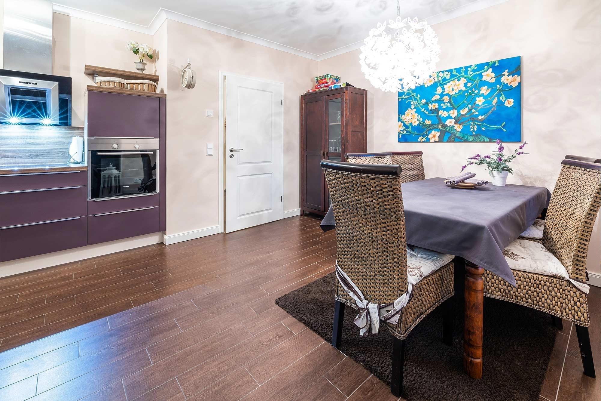 Es erwartet Sie 80 qm Wohnfläche und eine gemütliche Unterkunft für bis zu 4 Personen und einem Kleinkind bis 2 Jahre im Kinder-/Reisebett (gebührenpflichtig). Ein kleines Haustier ist nach Absprache und gegen Gebühr herzlich willkommen.