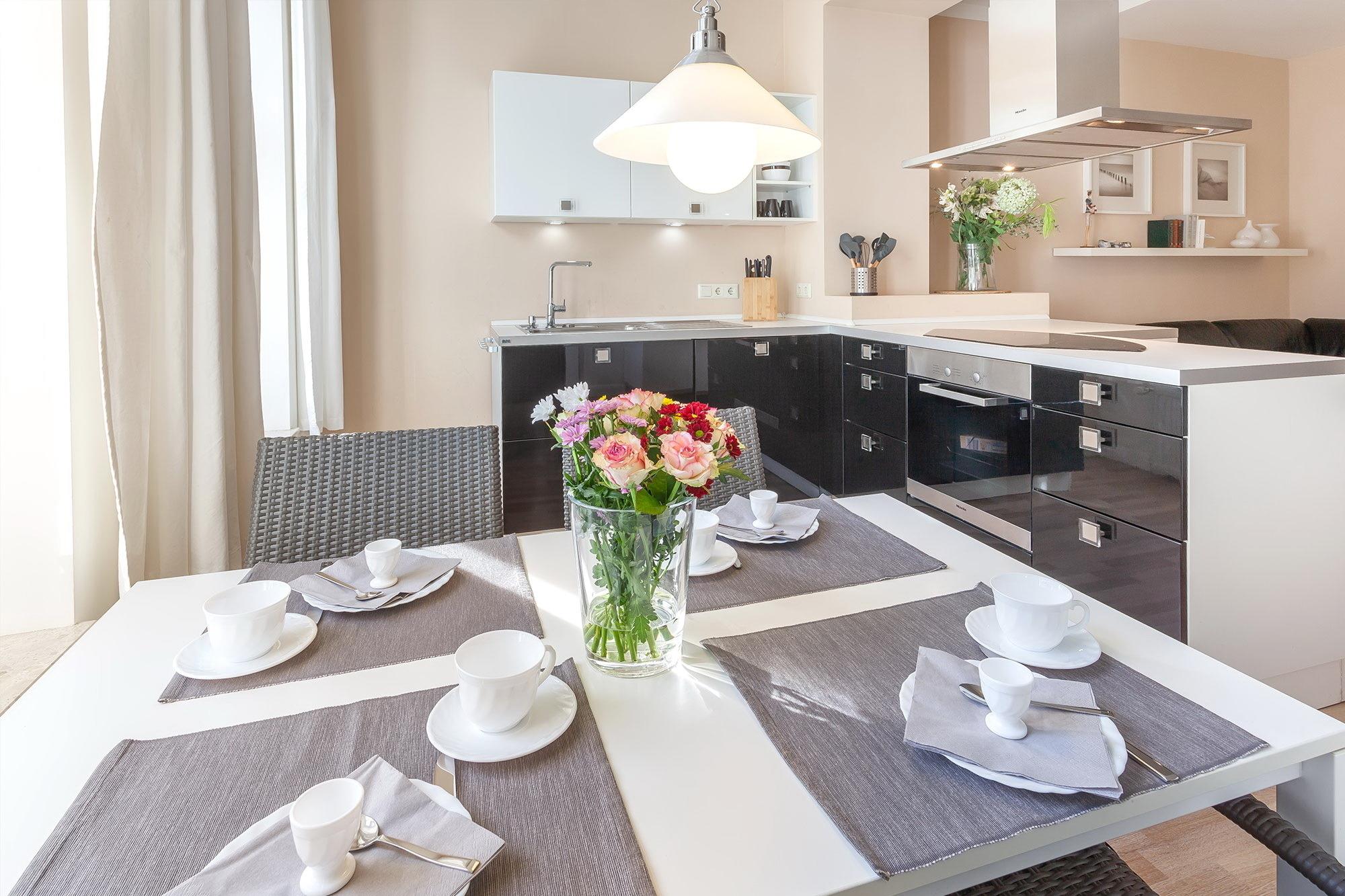 Moderne Ferienwohnung mit Sauna und luxuriöser Küche in Sellin, ideal für bis zu vier Personen.