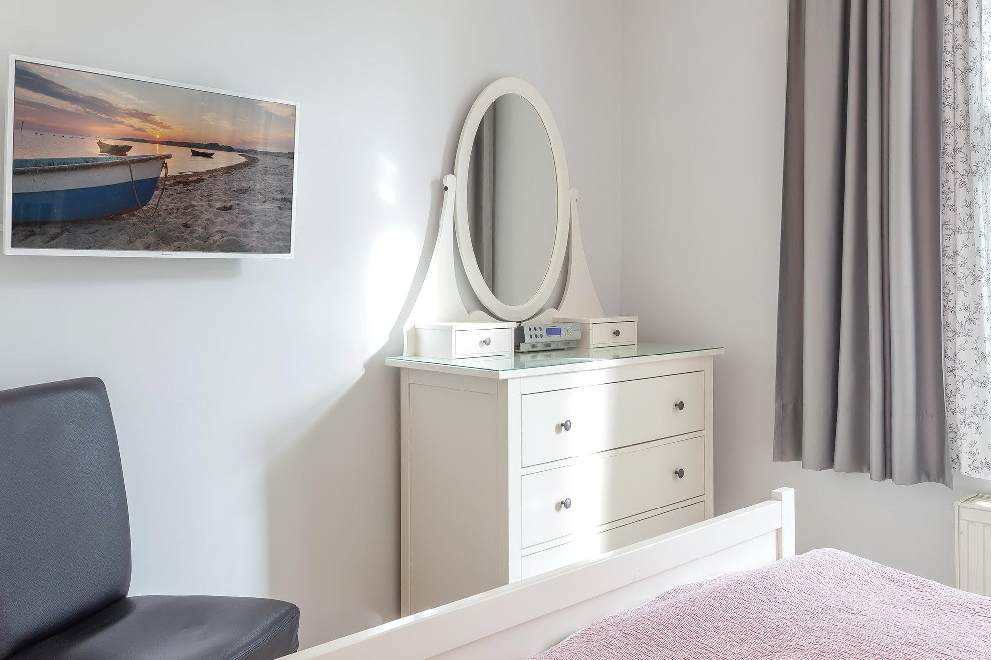 Im Badezimmer finden Sie neben einer ebenerdigen Dusche auch eine Sauna, dazu einen Doppelwaschtisch und WC/Bidet. Und wenn Sie sich dann abends nach einem erlebnisreichen Tag in die kuscheligen Doppelbetten der beiden Schlafzimmer legen, wünschen wir Ihnen schon jetzt süße Träume. Also, bis bald - Ihr perfektes Urlaubsdomizil in Sellins Flaniermeile erwartet Sie!