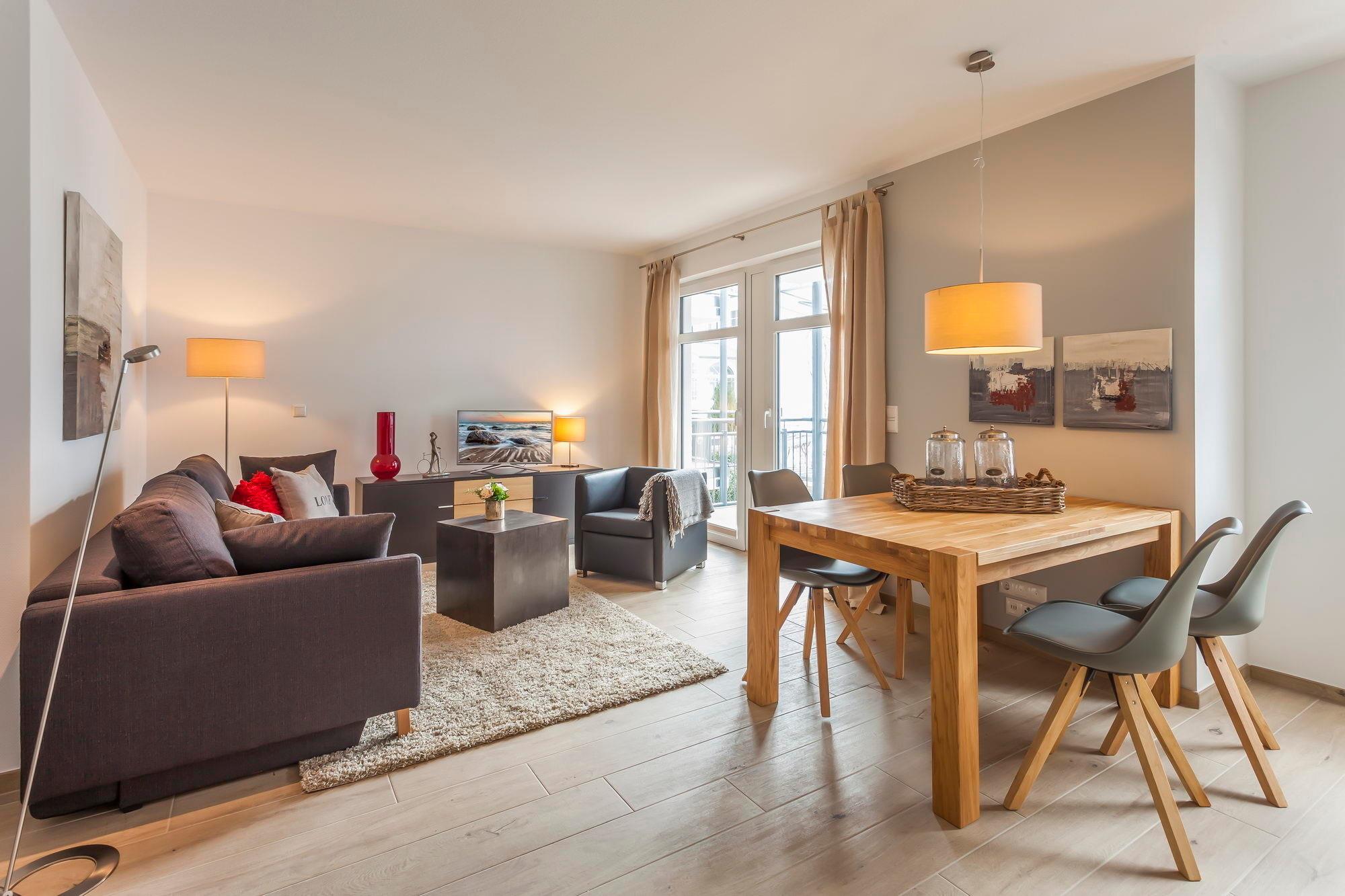 Moderne Ferienwohnung "Woge 42" in Sellin mit Balkon, Fußbodenheizung und Sauna für erholsame Urlaube.