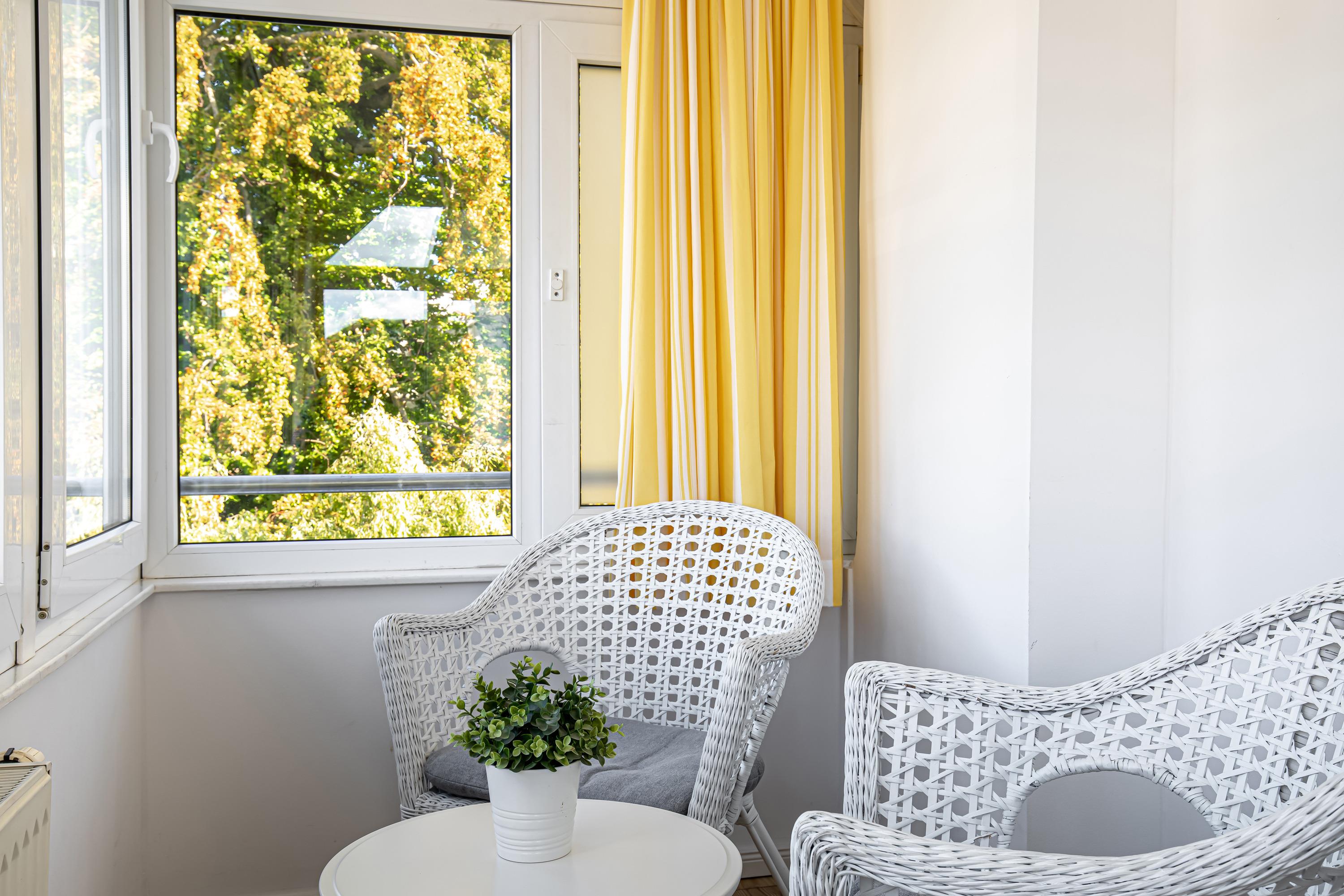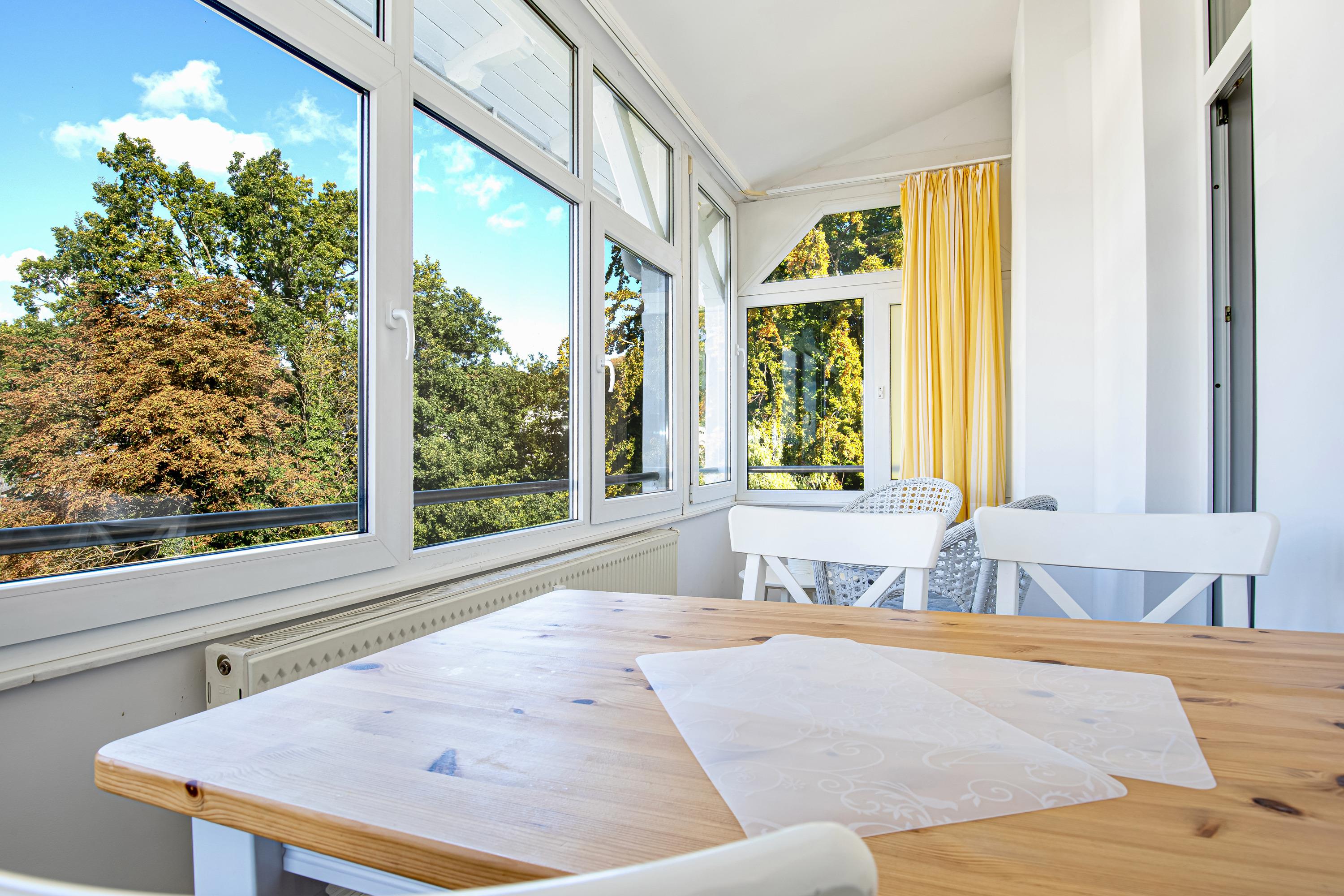 Der Wintergarten lädt, mit Blick zur Granitz, zum Verweilen ein und lässt Sie tagsüber die Sonnenstrahlen genießen.