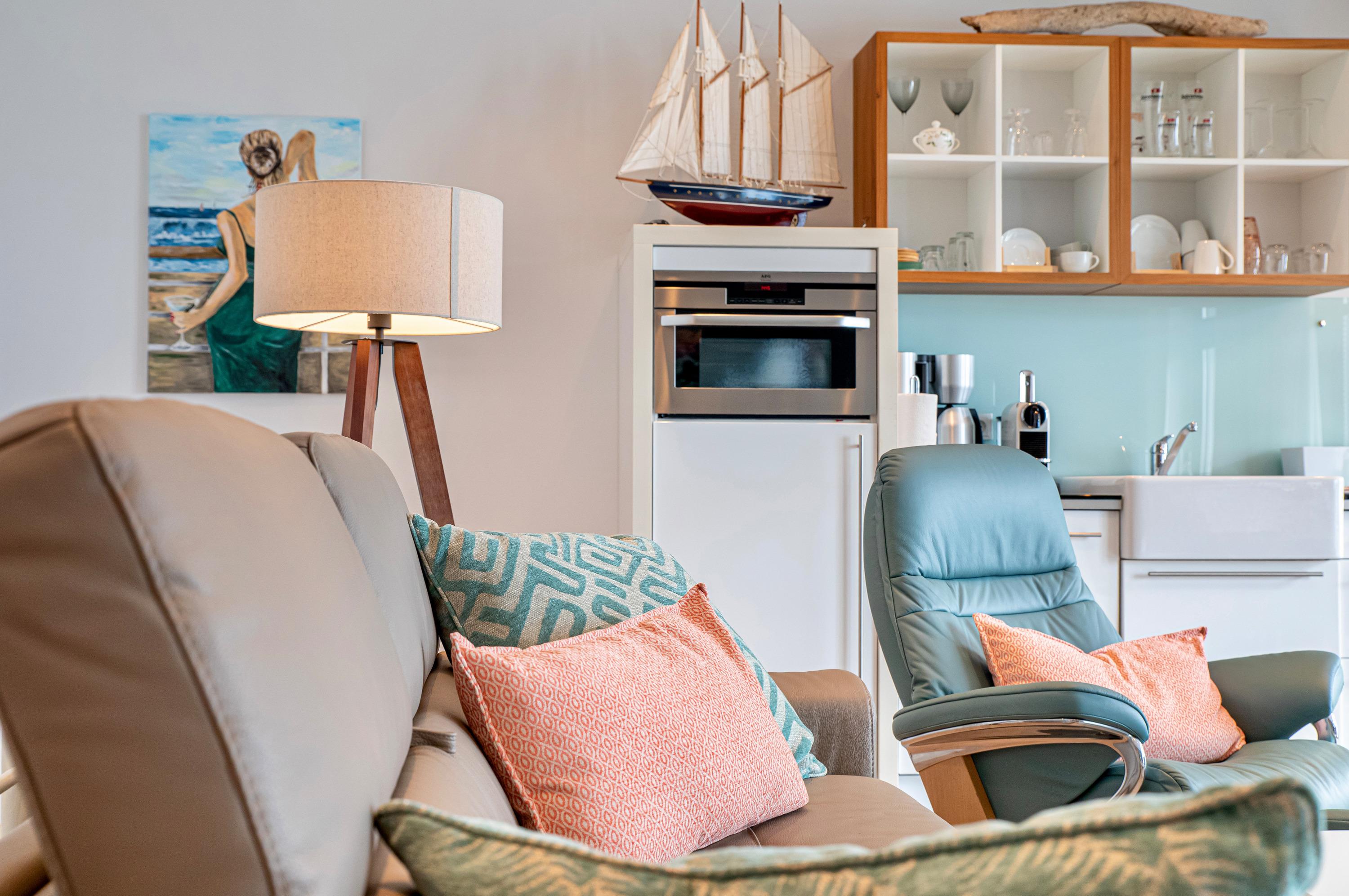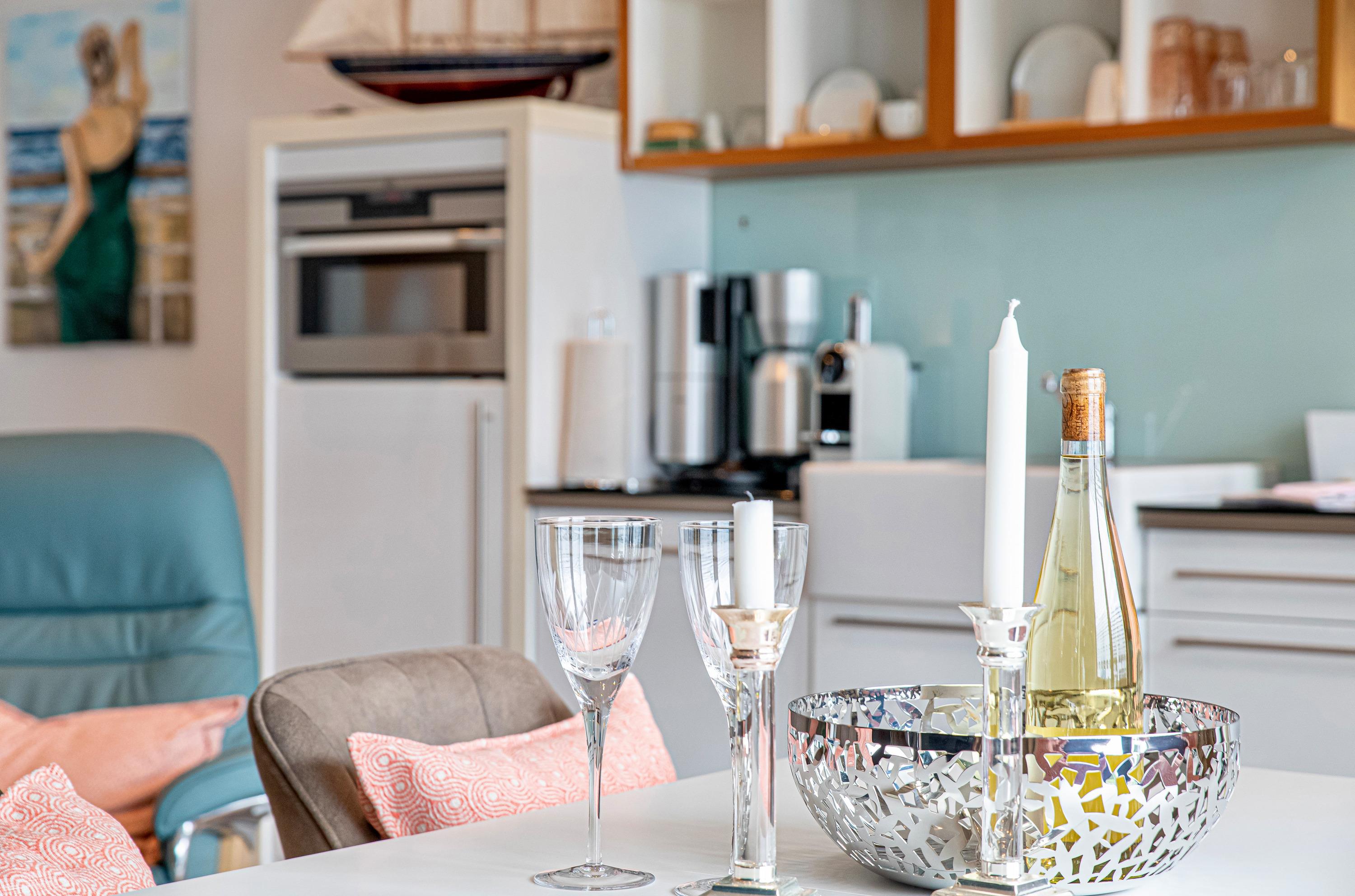 Wir freuen uns, Ihnen diese Mitte 2023 frisch renovierte Wohnung in bester Lage von Sellin anbieten zu können. Dieses tolle Domizil wurde mit viel Liebe zum Detail für Ihren perfekten Urlaub geschaffen. Bequem per Aufzug erreichen Sie aus der Tiefgarage das "Promenadendeck" im 1. Obergeschoss der Villa Paula. Auf insgesamt 2 Etagen erstrecken sich ein Eingangsbereich, ein Gäste-WC, ein Schlafzimmer mit Bad en Suite, ein großer Wohn-, Essbereich, sowie 2 tolle Balkone mit seitlichem Meerblick. Zusätzlich steht allen Gästen des Hauses ein kostenfreier Pool (saisonbedingt) zur Verfügung. Durch die hochwertige Schlafcouch im Wohnbereich können wir Ihnen dieses Domizil für bis zu 4 Personen anbieten.