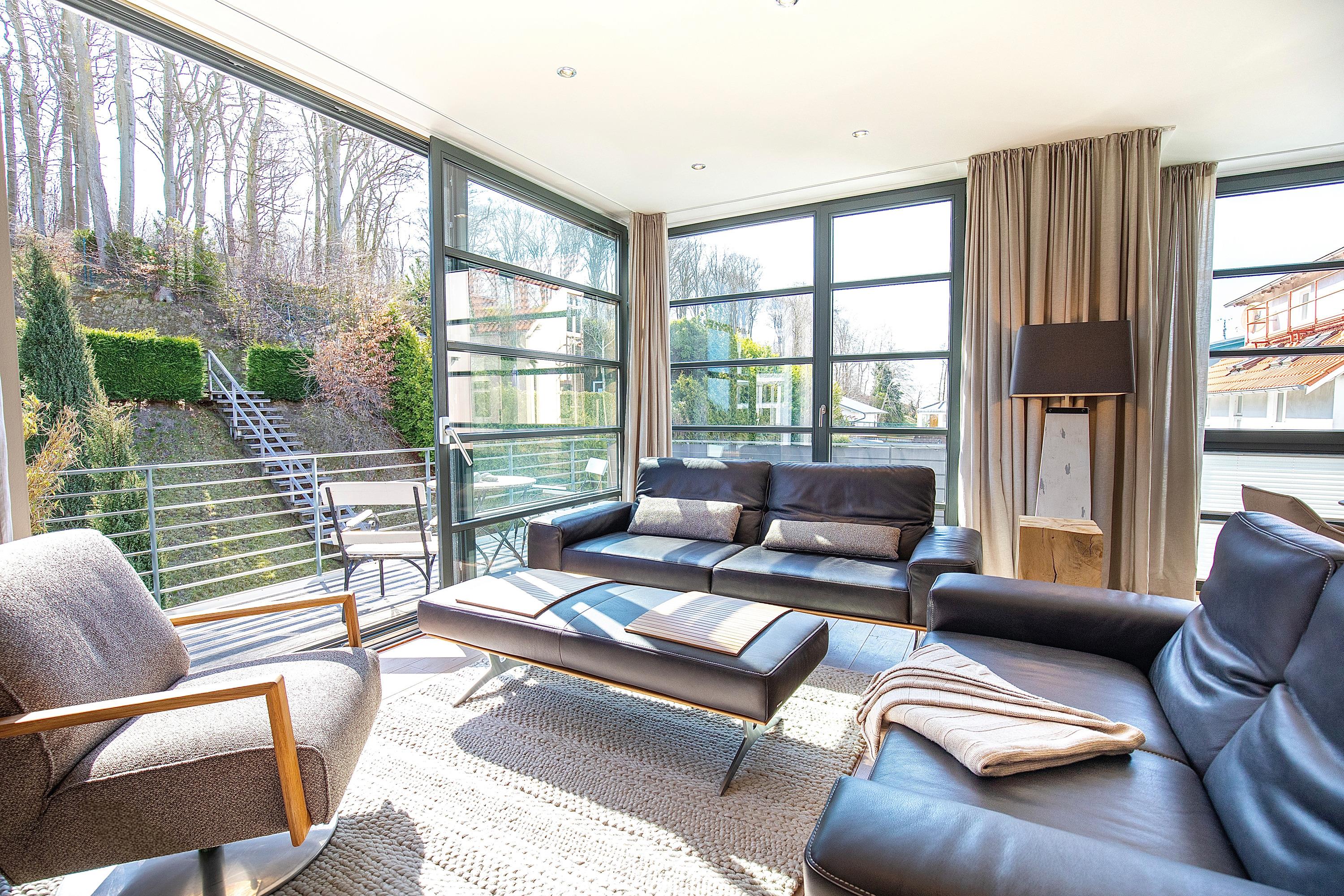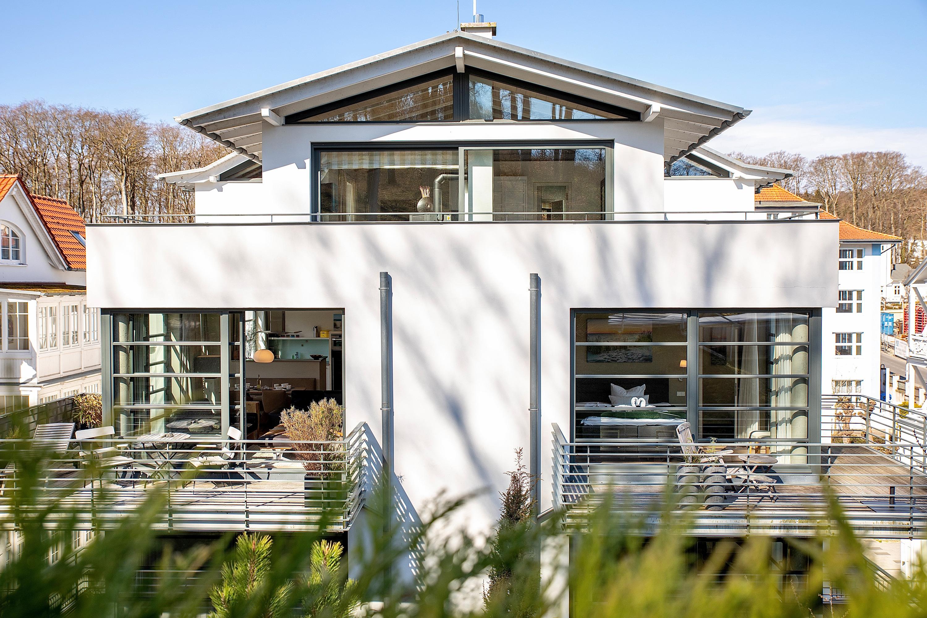Dieses wunderschöne Domizil wurde 2023 mit hochwertigsten Möbeln neu eingerichtet. Die Wohnung "Strandperle" der Villa Paula vereint modernen Luxus mit behaglichem Wohngefühl nahezu perfekt. Schon beim ersten Betreten der Wohnung im 3.OG werden Sie begeistert sein. Der lichtdurchflutete Wohnbereich lässt Sie durch seine große Glasfronten herrlich in die Natur und den Garten der Villa Paula schauen. Eine hochwertige Einbauküche mit schönem Essplatz lädt zum gemeinsamen kochen und verweilen ein. Die beiden Schlafzimmer verfügen je über ein Bad en Suite und über sehr hochwertige Betten. Hier lässt sich herrlich träumen. Als besonderes Highlight hat der Eigentümer eine kleine Wärmekabine in der Wohnung installieren lassen. Hier können Sie sich an kalten Tagen durch die wohltuende Wärme der Infrarotstrahlen durchwärmen lassen. Die Villa Paula befindet sich am oberen Ende der berühmten Wilhelmstraße. 100 Meter von der Seebrücke Sellin und dem feinsandigen Ostseestrand entfernt, überzeugt das Haus außerdem mit Tiefgarage, Außenpool und kostenfreier Nutzung von Waschmaschine und Trockner.