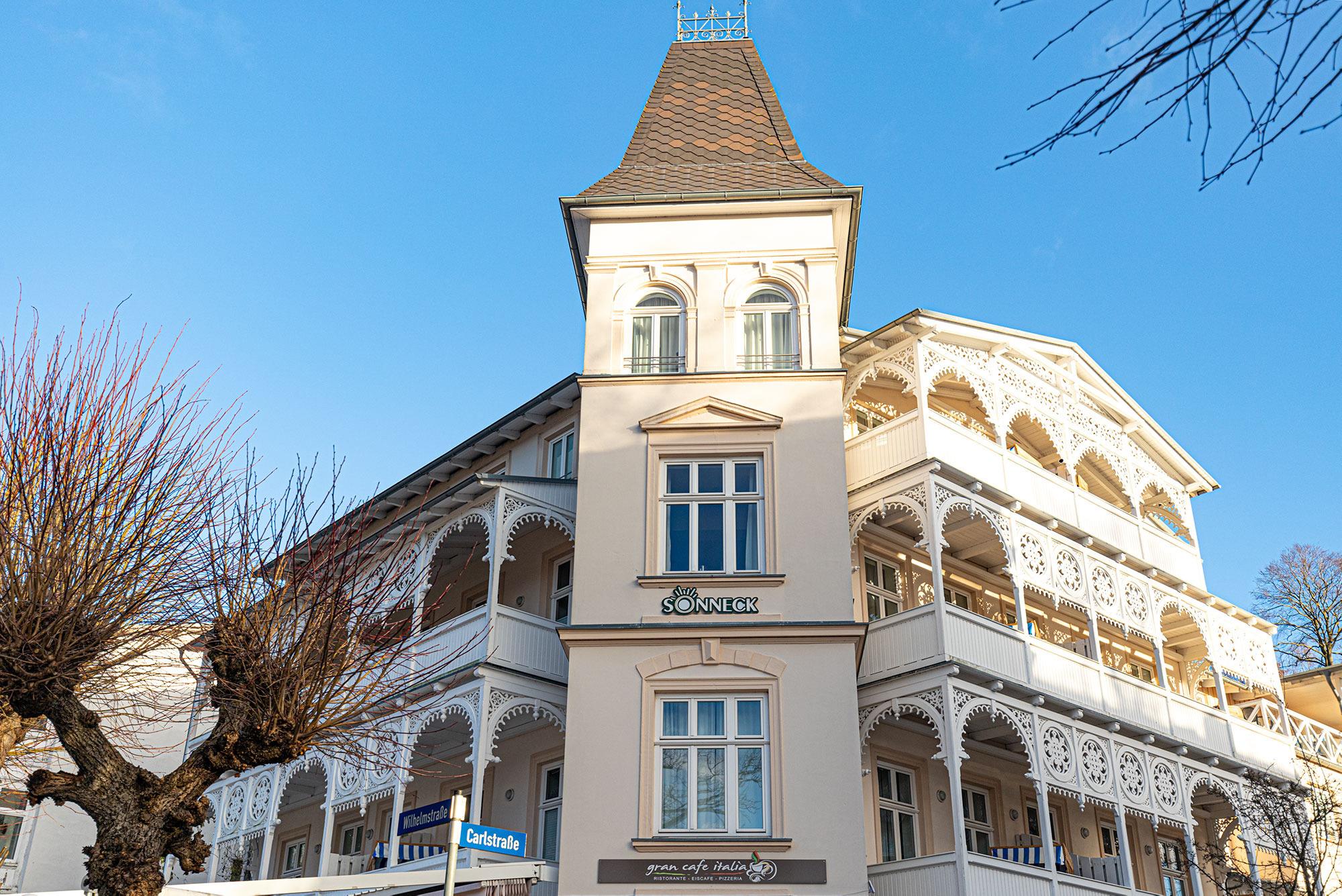 Im ersten Obergeschoss der "Villa Sonneck" begrüßt Sie dieses schöne Domizil. Die Ferienwohnung wurde im Frühjahr 2023 komplett saniert. Direkt an Sellin´s Prachtstraße -der Wilhelmstraße- gelegen, bietet diese Unterkunft einen tollen Startpunkt um die unzähligen Restaurants und den feinsandigen Ostseestrand zu erkunden. Auf gut 65qm Wohnfläche, unterteilt in Wohnzimmer mit Schlafcouch, 2 Schlafzimmer sowie Duschbad, bietet diese Wohnung ausreichend Platz für bis zu 6 Personen. Per Lift erreichen Sie den Saunabereich im Untergeschoss des Hauses, welcher an kalten Tagen für wohltuende Wärme sorgt. Hier gibt es auch einen direkten Zugang zum hauseigenen Restaurant (Italiener), welches die Gäste gerne mit diversen Köstlichkeiten versorgt. Ebenso befinden sich Waschmaschine und Trockner auf dieser Etage. Für Ihren PKW ist ein kostenfreier Stellplatz auf dem Parkplatz des Hauses reserviert. In der Wohnung gibt es kostenfreies W-Lan/Internet. Der große Balkon der Wohnung bietet ausreichend Platz für 6 Personen und lädt an schönen Sommertagen zum gemütlichen verweilen ein.